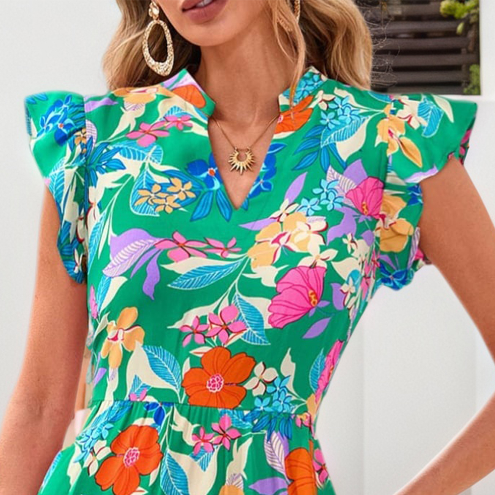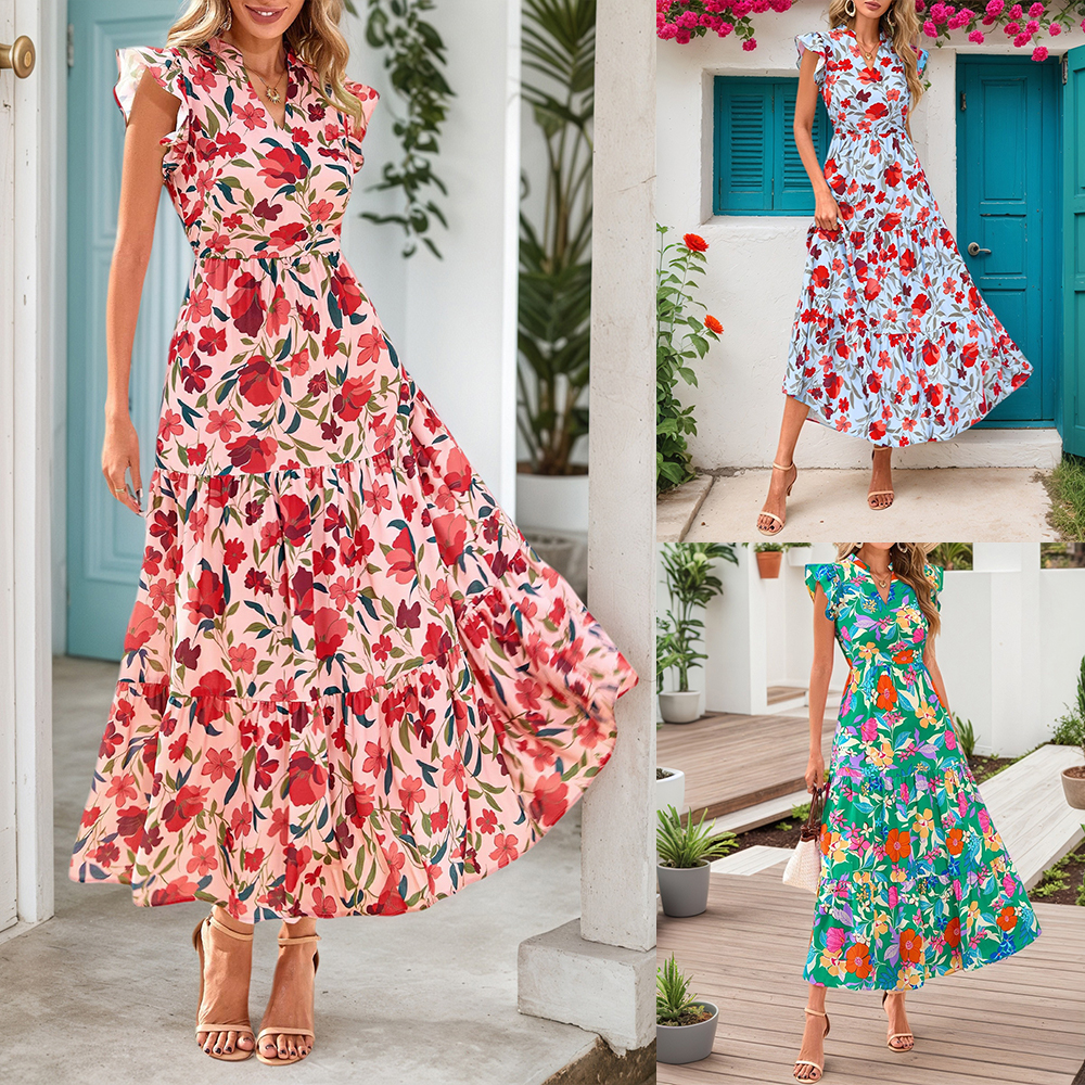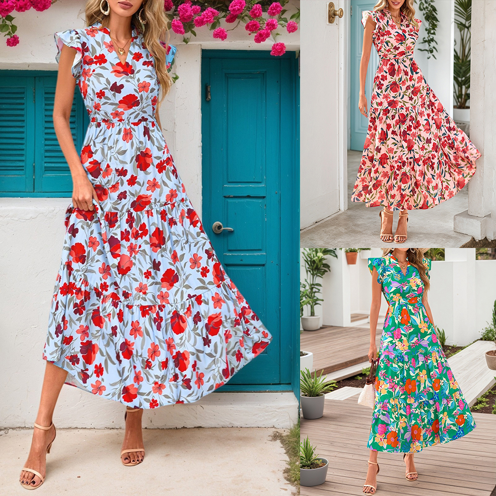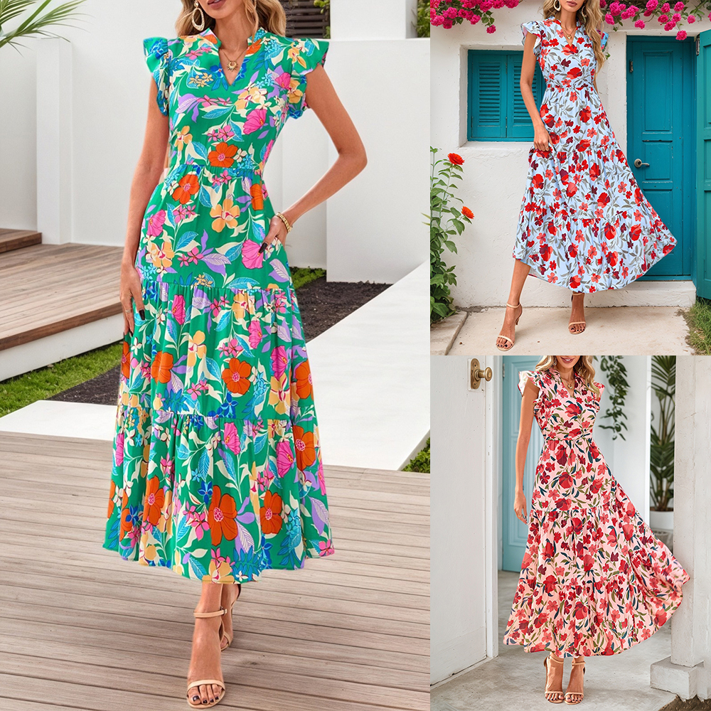 • Plus Size Womens Floral Chiffon Midi Dress Summer Evening Party Swing Dresses US