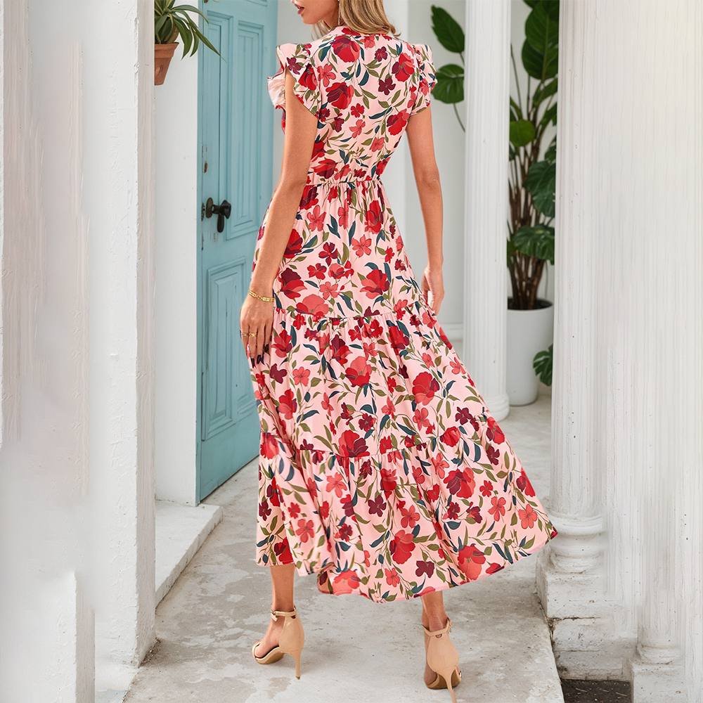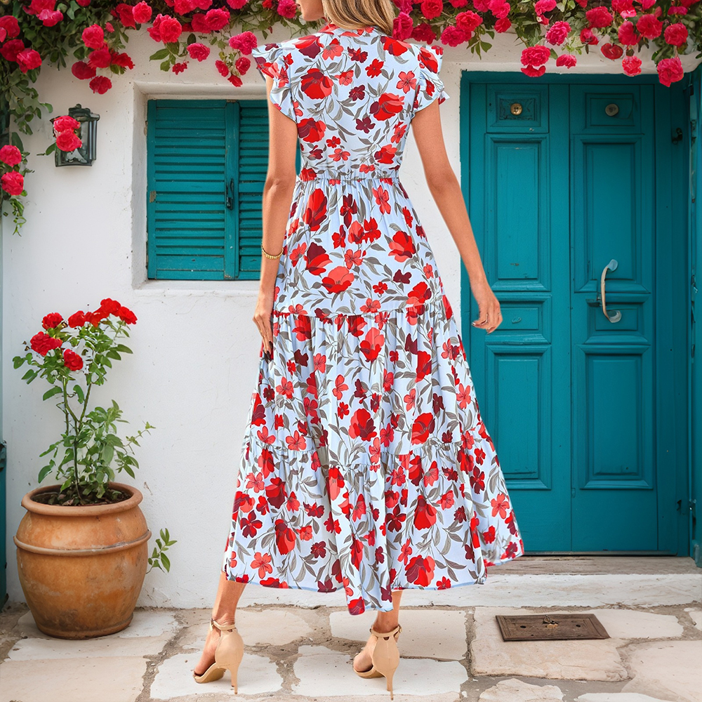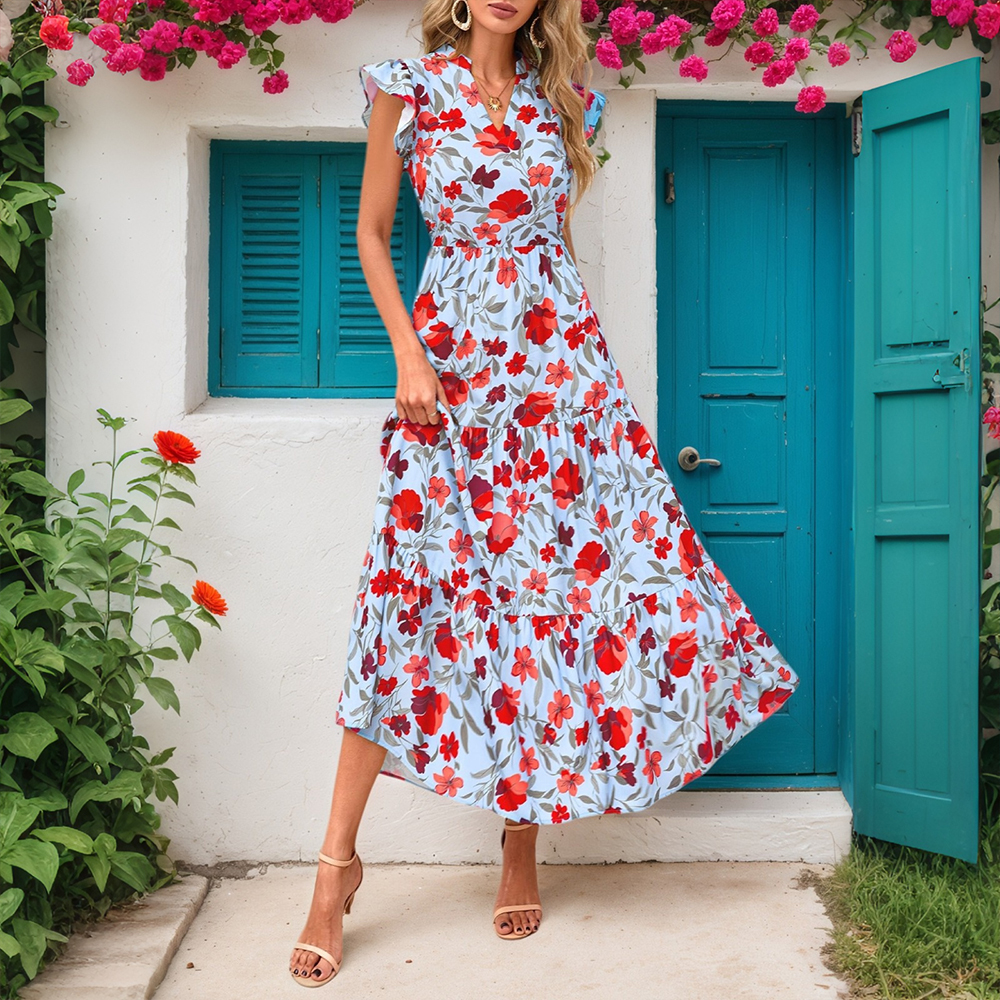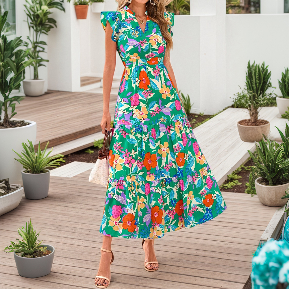 • Plus Size Womens Floral Chiffon Midi Dress Summer Evening Party Swing Dresses US
