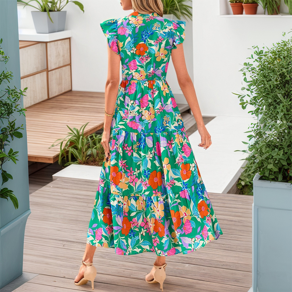 • Plus Size Womens V-Neck Butterfly Printed Party Midi Dress Ladies A-Lined Dress