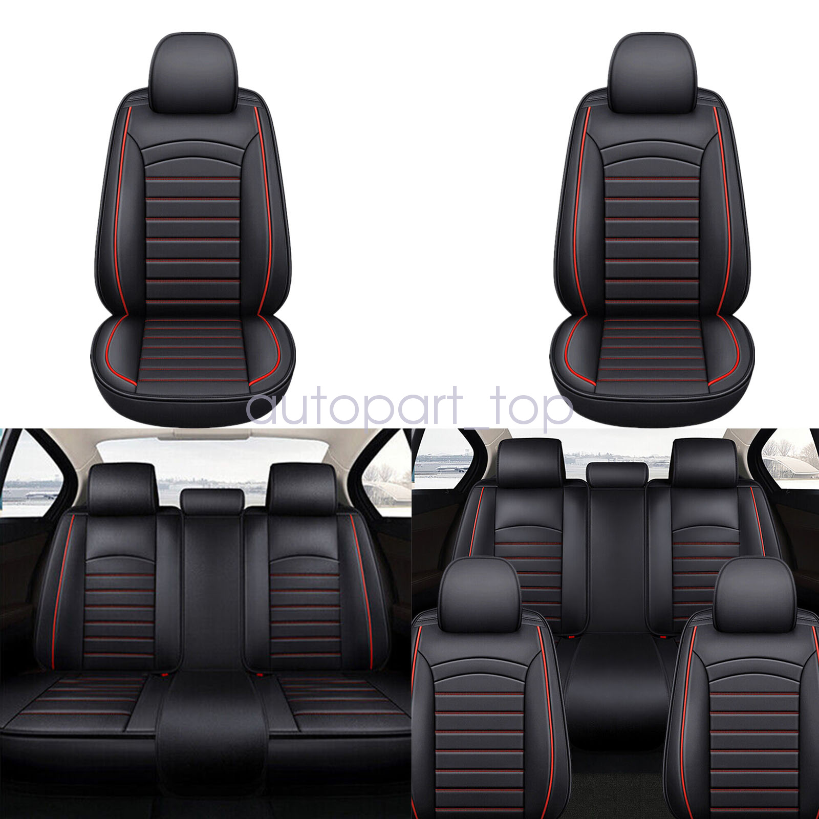 For JEEP Wrangler PU Leather Seat Covers Full Set Front & Rear Protector Cushion Black With Red Stitching