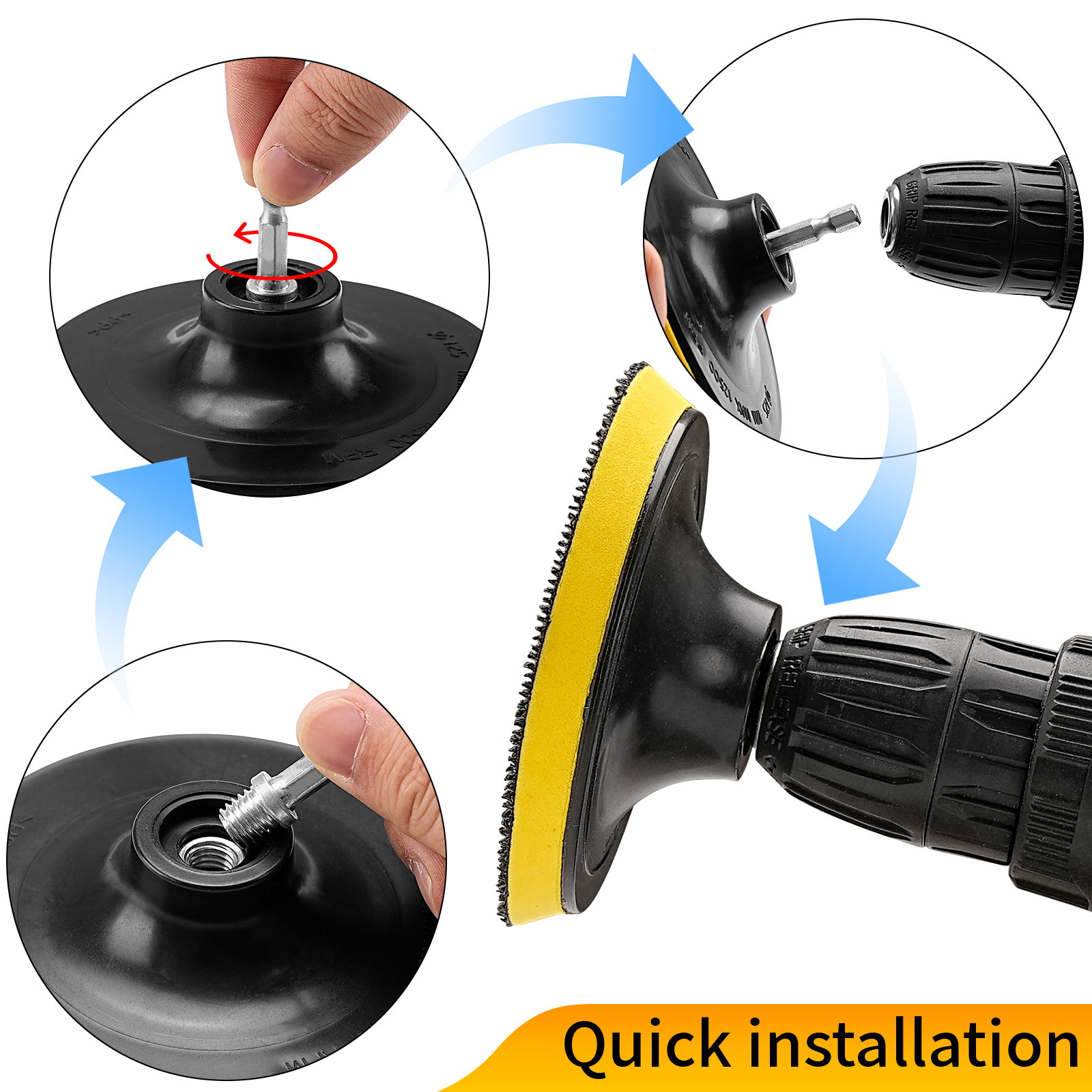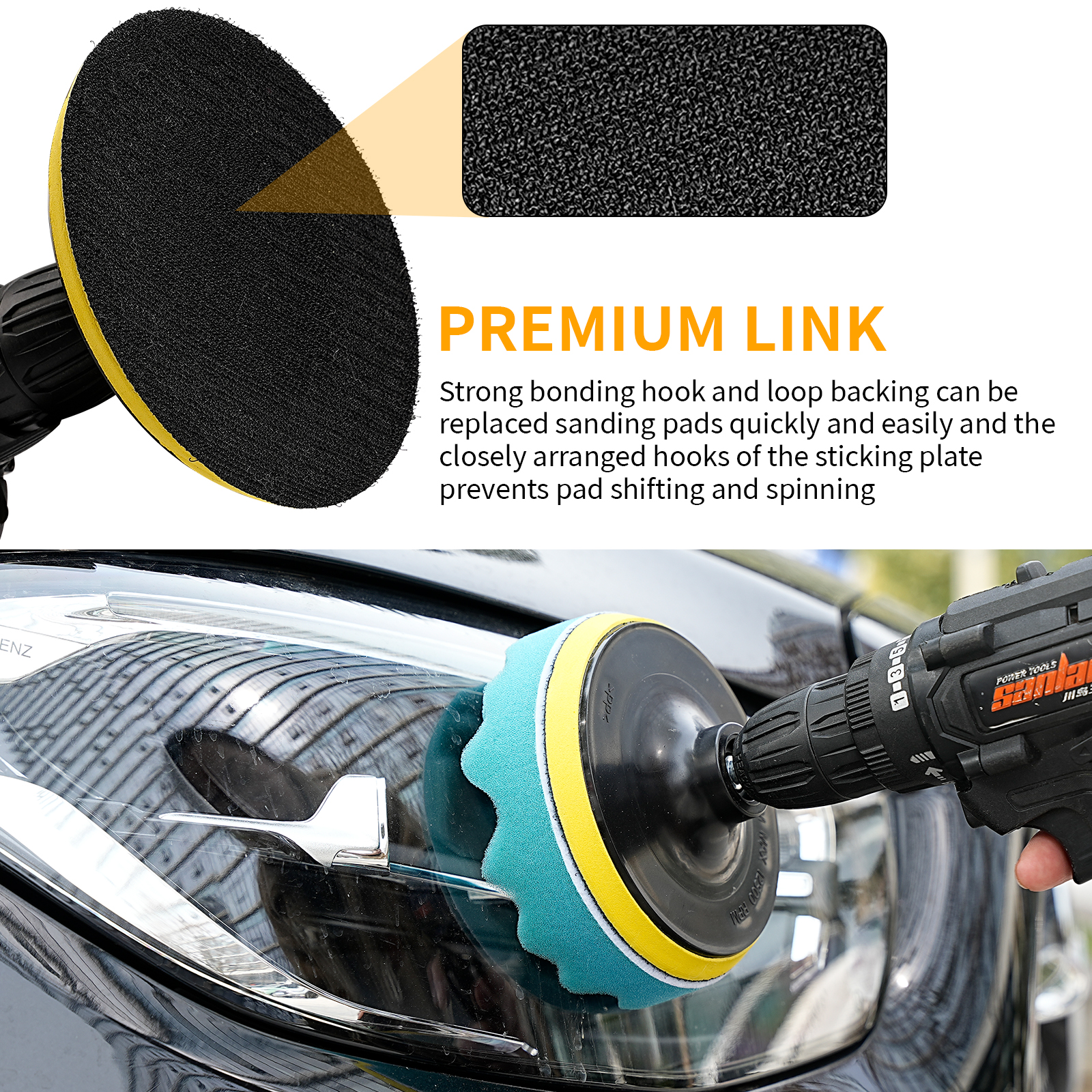 With the hook and loop fasteners, you can quickly attach or replace pads to the backing plate while you work