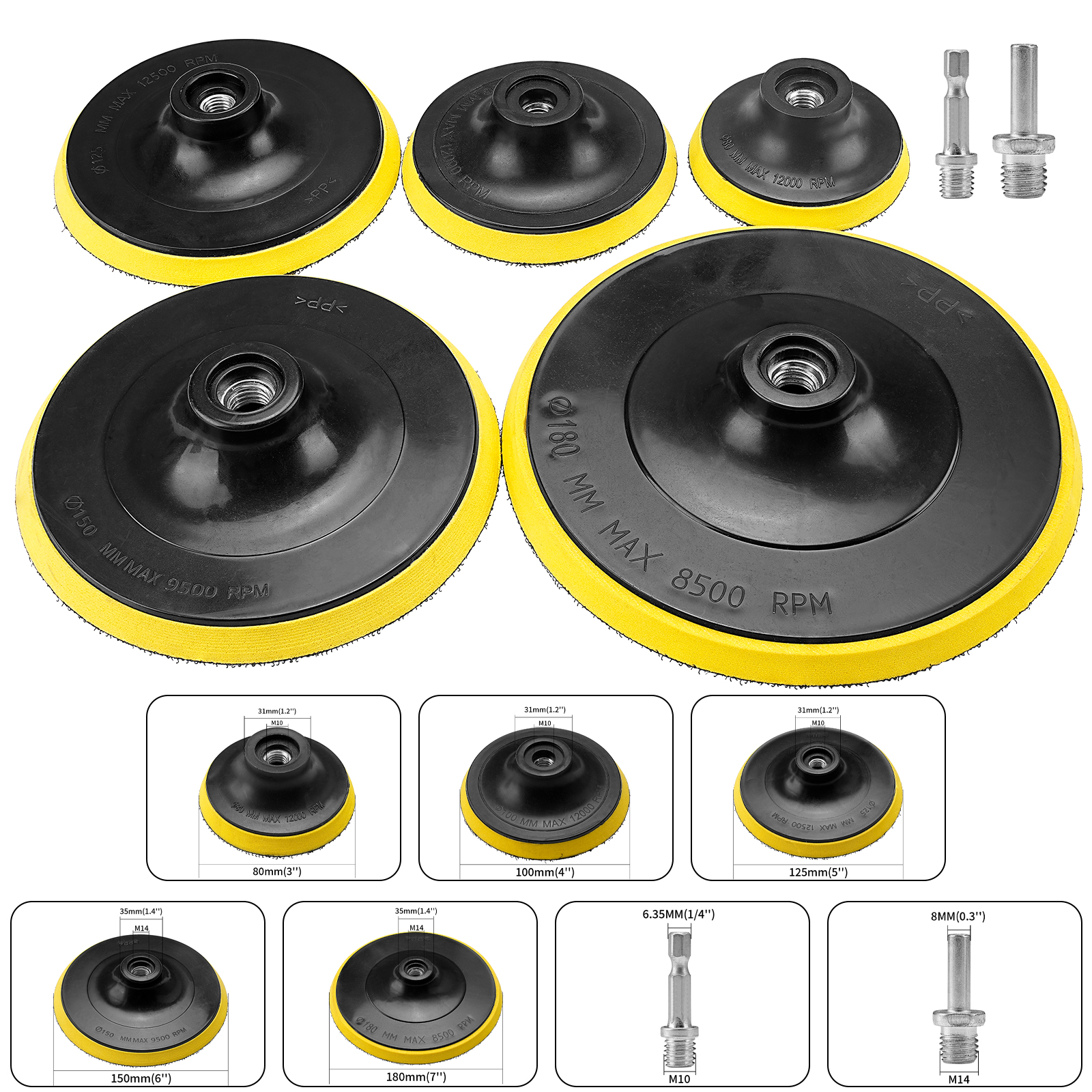 Diameter: Approx. 80mm/3" 100mm/4" 125mm/5" 150mm/6" 180mm/7"