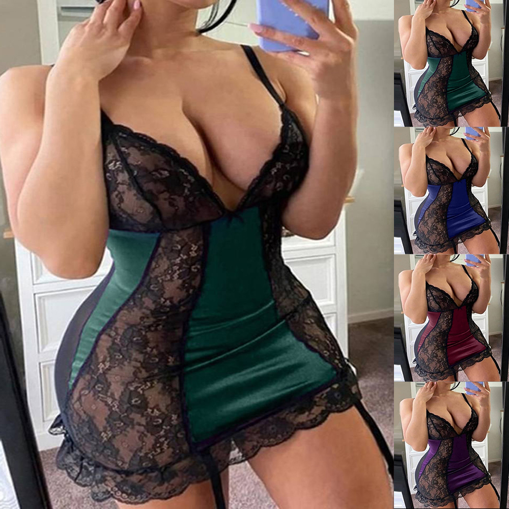 Product Features:Women's sexy nightdress with hollow lace trim (excluding thong)