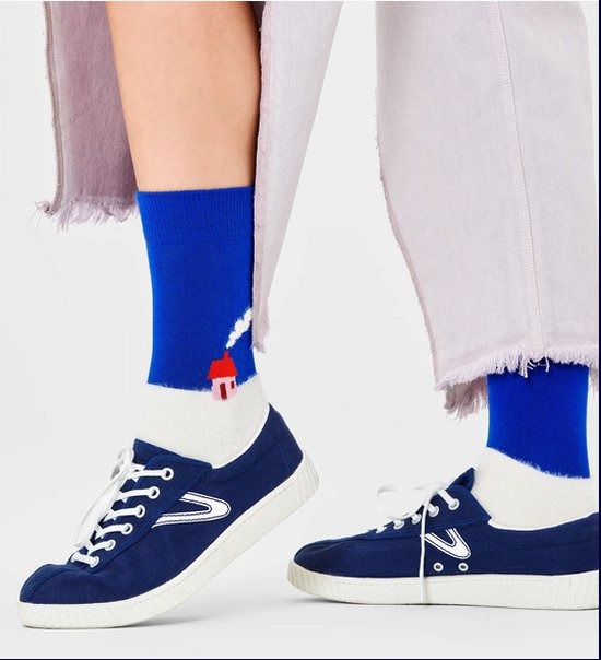 Welcome home, these super fluffy socks make coming home even more fun. Home is where your socks are. The foot area and the smoke plume of the chimney are made of a soft and fluffy material, in short, pleasant and comfortable. Happy Socks Welcome Home composition: 79% polyamide 20% cotton 1% elastane Ribbed cuffs Color-blocked styling House graphic at leg Made in Turkey Care Instructions: - Machine washable at 40 degrees - Do not bleach - Do not tumble dry - Do not iron - Do not dry clean