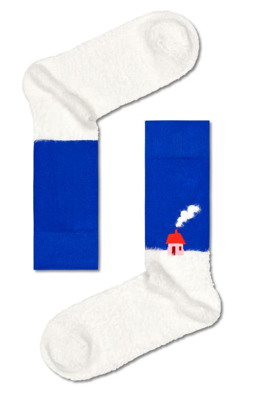 Happy Socks Comfy Welcome Home Crew Socks Blue White-M8-12 Women10-12.5