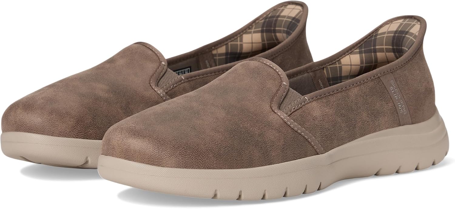 Step into stylish comfort with Skechers Hands Free Slip-ins: On-The-Go Flex Double Gore slip on. Designed with our exclusive Heel Pillow, this slip-on features a faux leather Perform Tex upper with a Skechers Air-Cooled Memory Foam comfort insole and a lightweight ULTRA GO cushioned midsole. Machine washable. Vegan.
