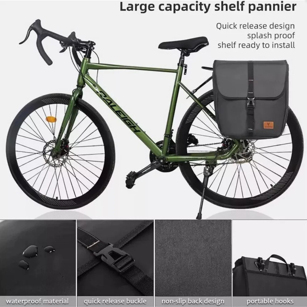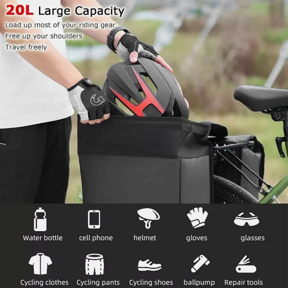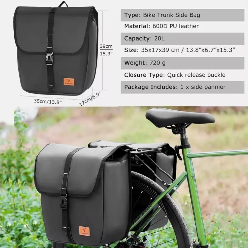 Info zu diesem Artikel: Die Bike Bag ist eine wasserdichte Fahrradtasche für Gepäckträger, die besonders einfach anzubringen und zu entfernen ist, da zwei obere Haken und ein unterer Verschlusshaken die Fahrradtasche schnell und einfach sicher am Gepäckträger befestigen. Die Fahrradtasche ist aus hochwertigem, wasserdichtem 600D PU-Leder gefertigt, um Ihre Sachen bei jedem Wetter trocken zu halten und eine lange Haltbarkeit auch bei intensiver Nutzung zu gewährleisten. Die schwarze wasserdichte Fahrradtasche kann für einfachen Transport entweder als Fahrradtasche oder als Handtasche verwendet werden. Diese wasserdichte Fahrradtasche verfügt über ein großes Hauptfach für einfachen Zugriff, perfekt für die Aufbewahrung kleiner Gegenstände wie Telefone, Powerbanks und anderes Zubehör. Spezifikationen: Material: 600D PU-Leder, PVC, Nylon, Polyester Farbe: schwarz Größe: ca. 35*17*39 cm Fassungsvermögen: 20L