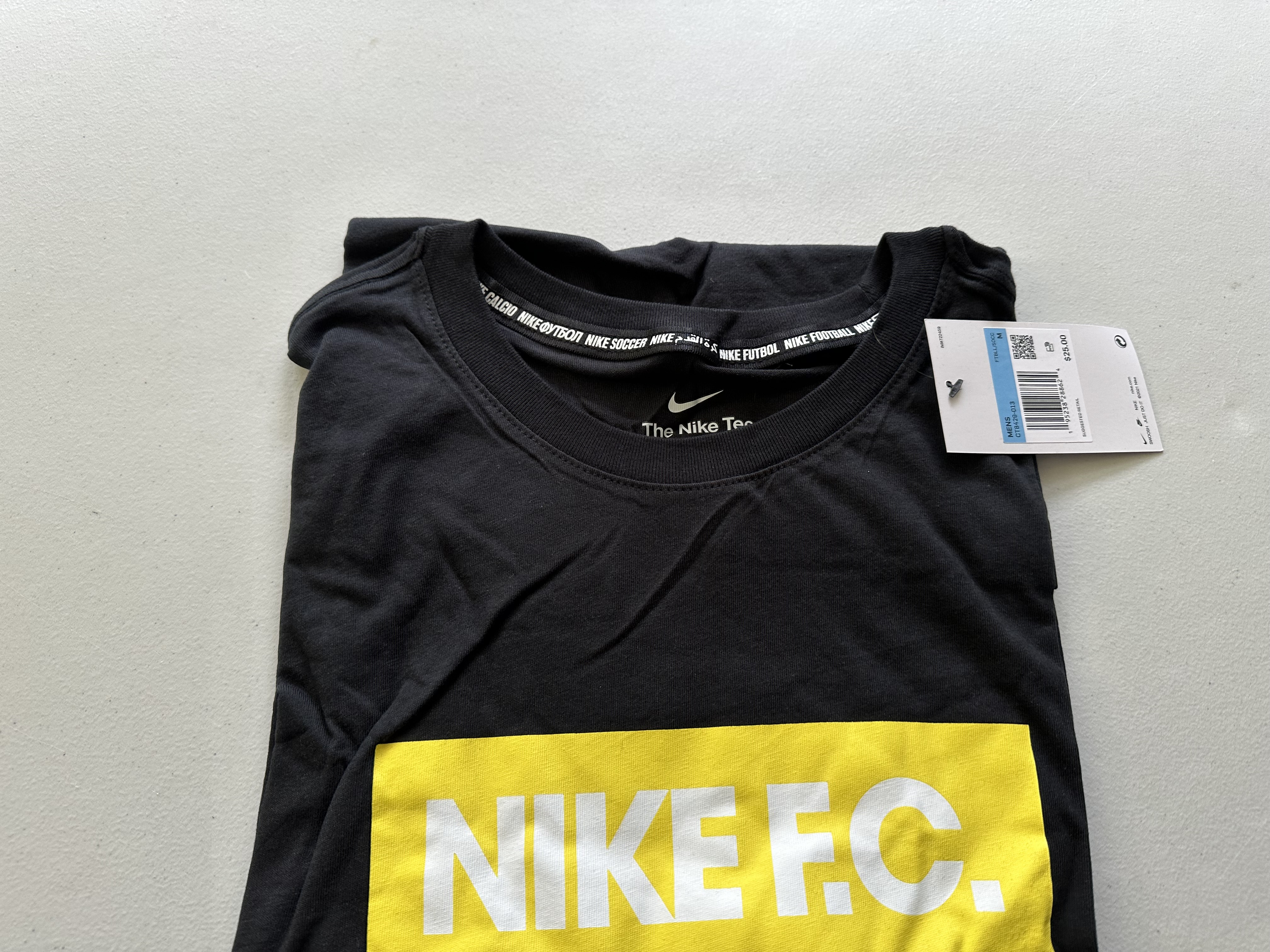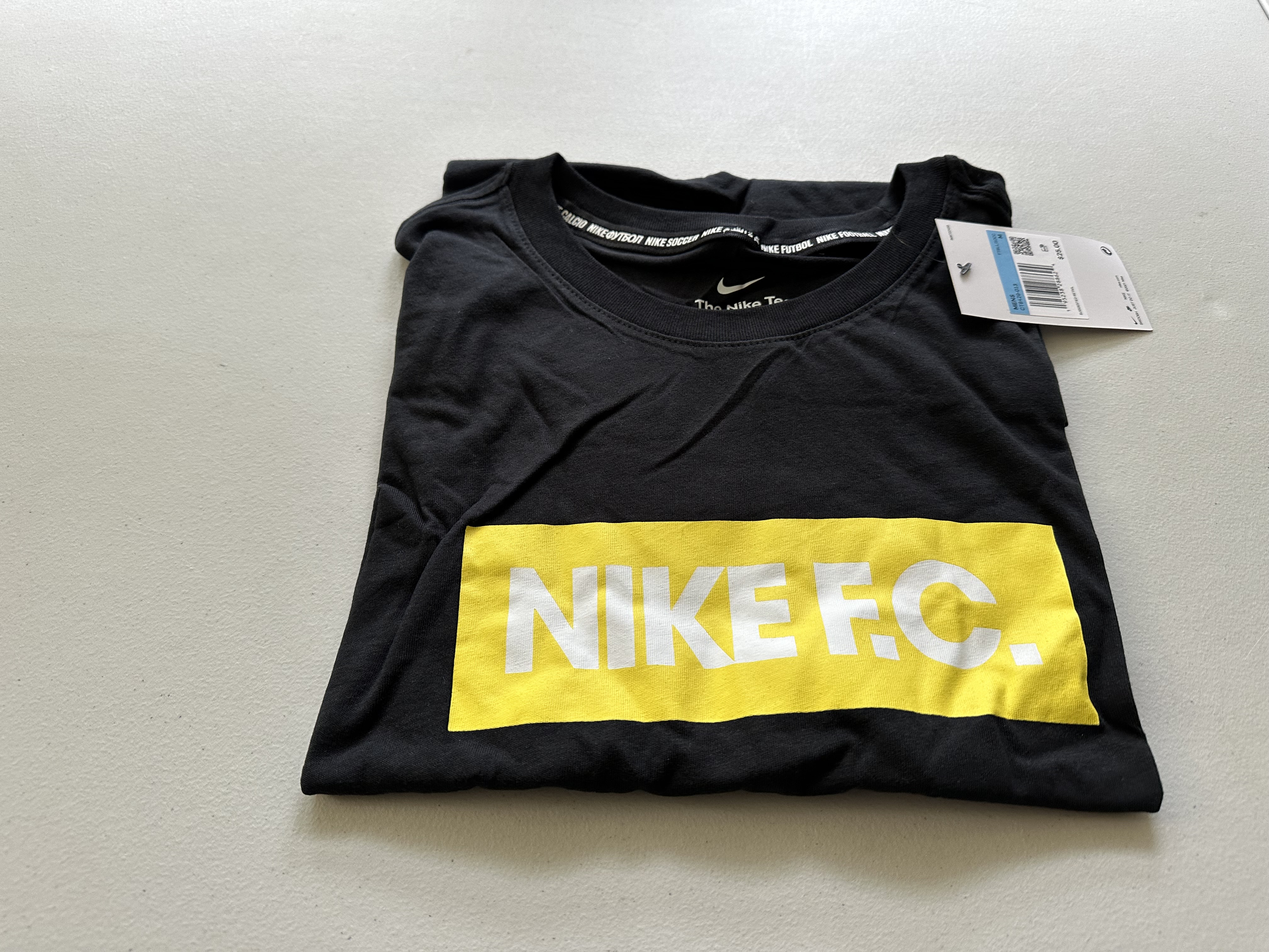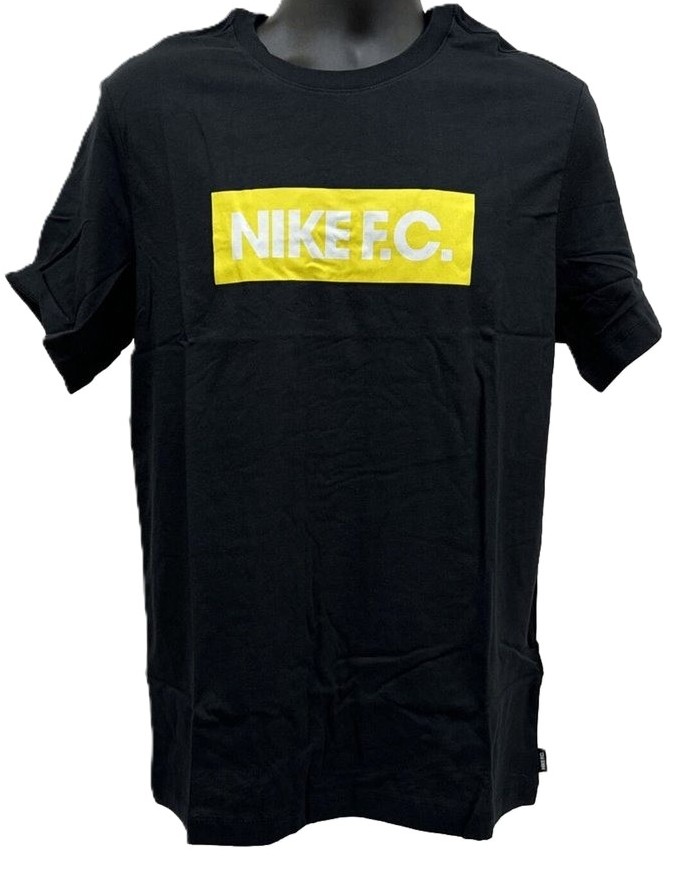 Nike Mens FC Soccer Block Logo Graphic T-Shirt in Black/Gold- Medium