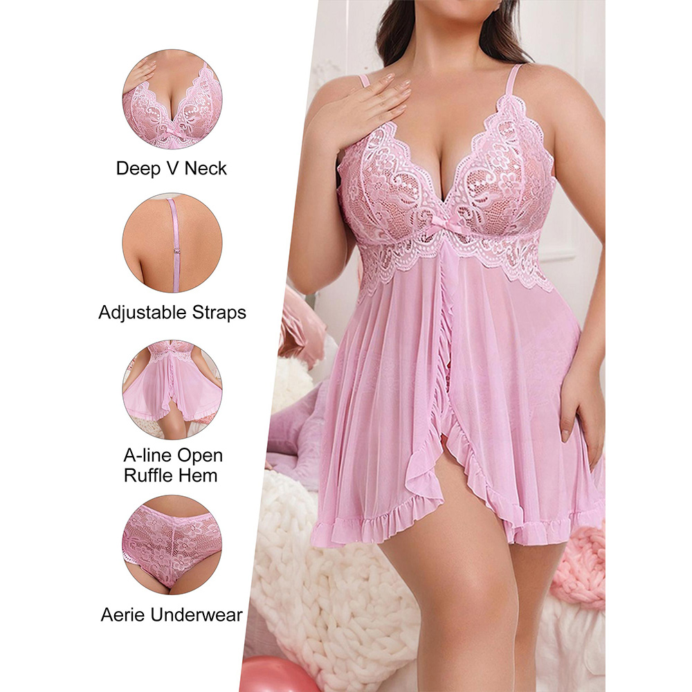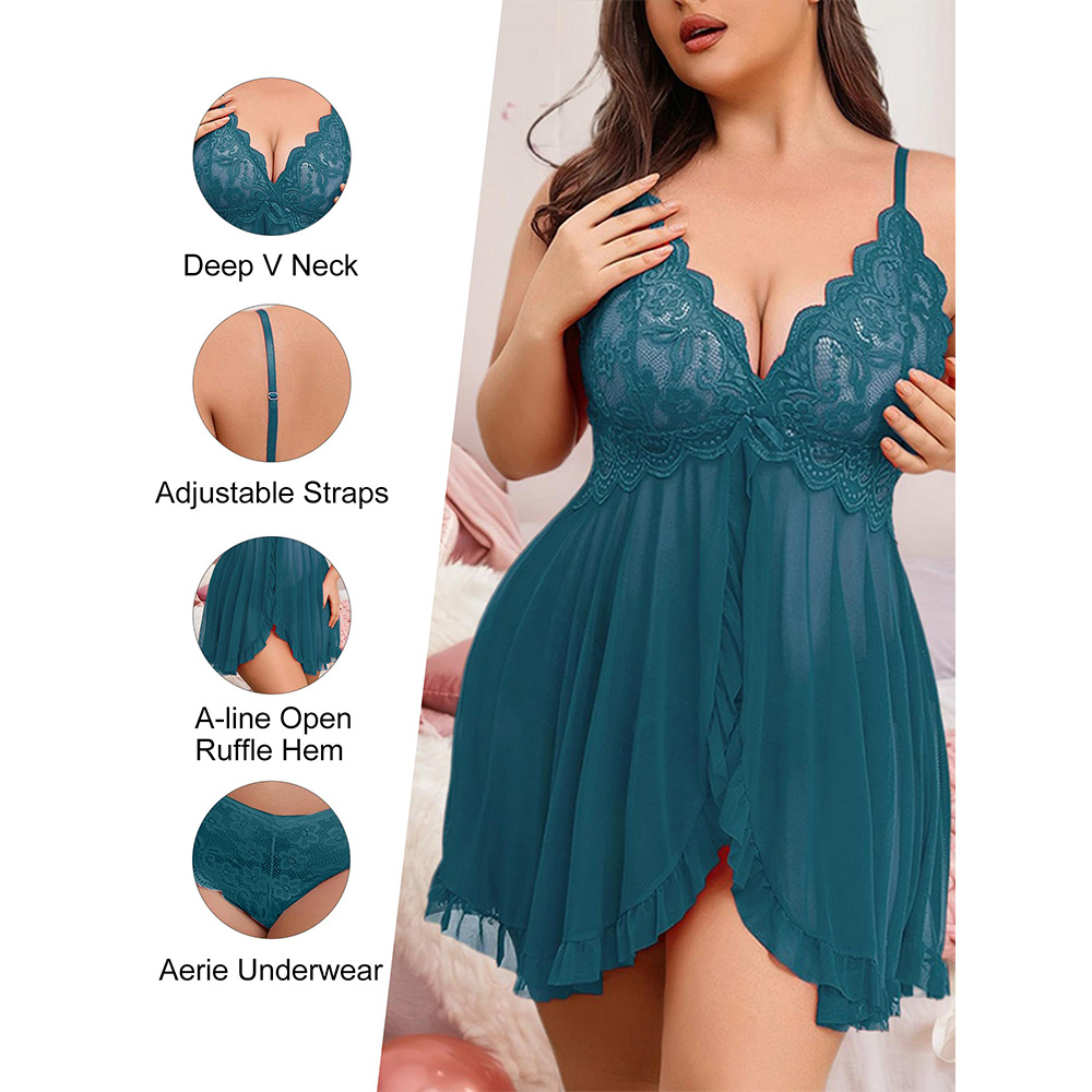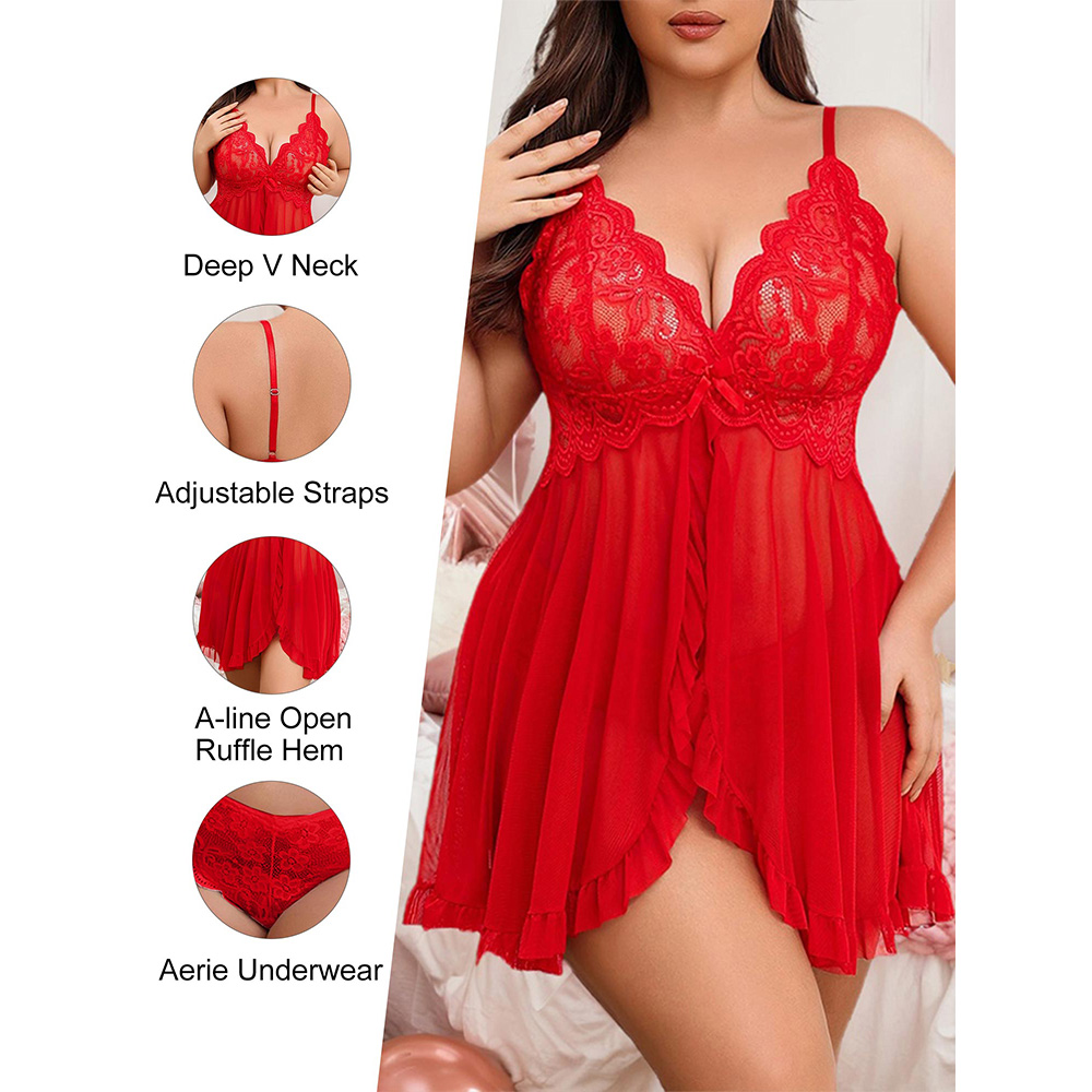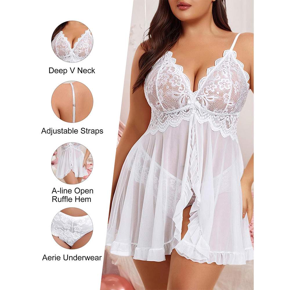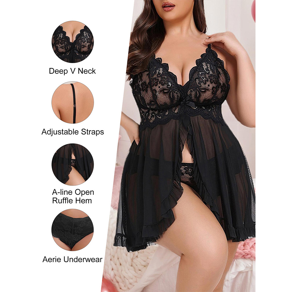 • Plus Size Women's Sexy Lingerie Set Lace Babydoll Nigh Dress Sleepwear Nightgown