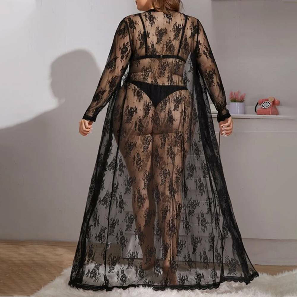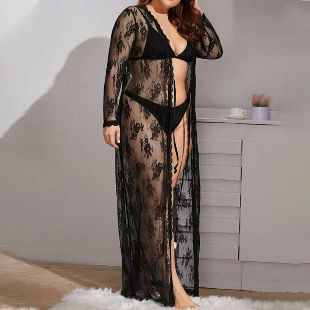 Product Features:Plus size Women's All-match Long Lace Cardigan Nightgown