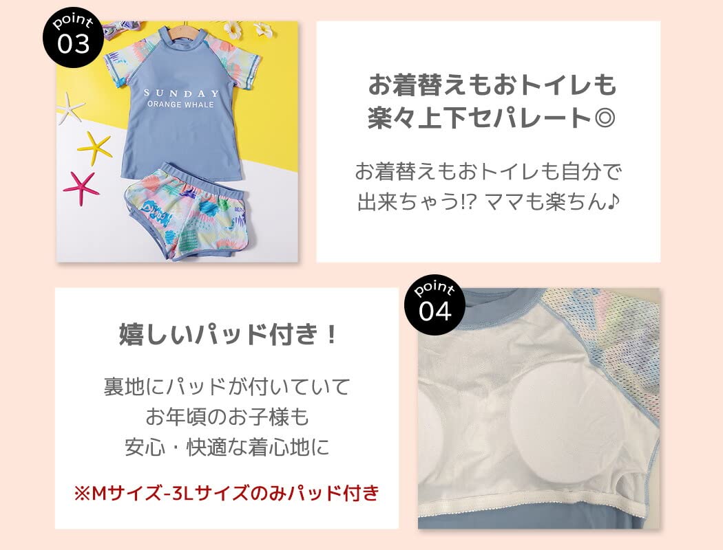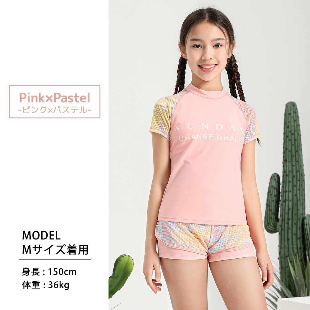 Set contents: 2-piece top and bottom set swimwear (short-sleeved tops + shorts) A total outfit with a high neck and perfect sun protection♪ Junior Children's swimwear Swimwear Suitable for heights 130cm 140cm 150cm 160cm 170cm Elementary school students Size S Reference height 130-140 Length 48 Width 32 Skirt length 27 Waist 54 Pants length 20■ [Product details] Zipper: None Waist adjustment: None Metal parts: None Plastic parts: None ■Easy to separate top and bottom for changing clothes and using the toilet ◎You can change your clothes and use the toilet by yourself! ? It's easy for moms too♪ ■You can change your clothes as if you were wearing clothes! Just slip it over top like a shirt! Easy to change even by yourself♪ ■Kids swimsuit for girls