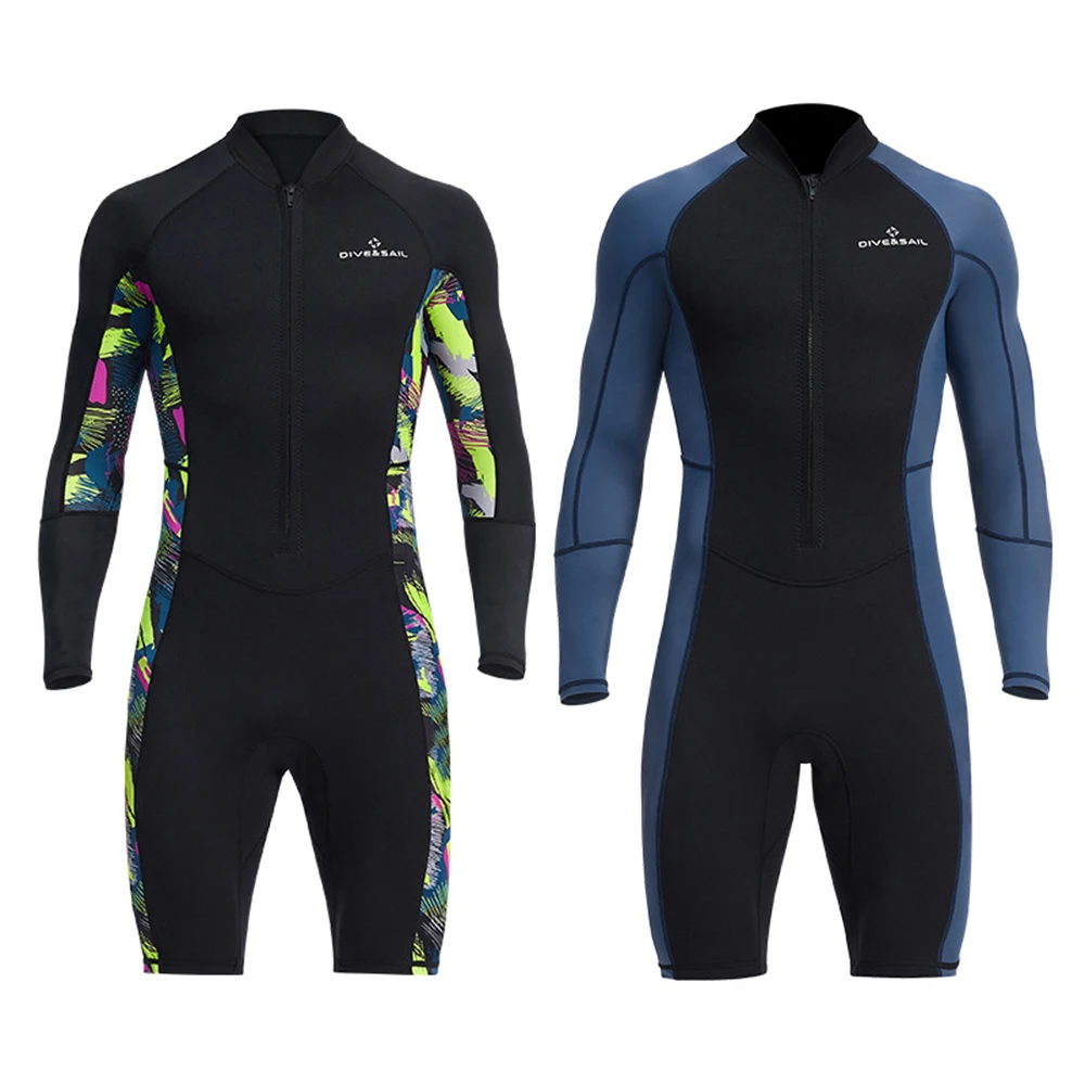 Men's Keep Warm Wetsuits 1.5mm Neoprene Front Zip Long Sleeve Shorty Dive Skin Snorkeling, Surfing,Canoeing, Swimming Triathlon