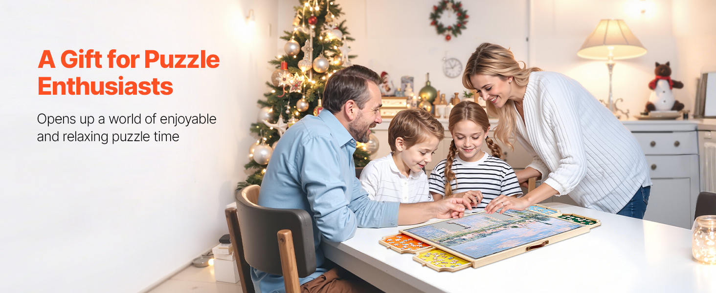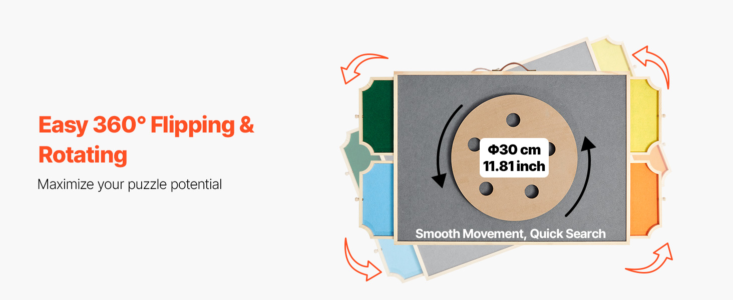 - 360° Rotating Base Ring: This portable puzzle tabletop allows smooth 360° rotation. With just a few seconds, you can effortlessly rotate the table to the desired position. It provides a convenient and fun way to play puzzle games