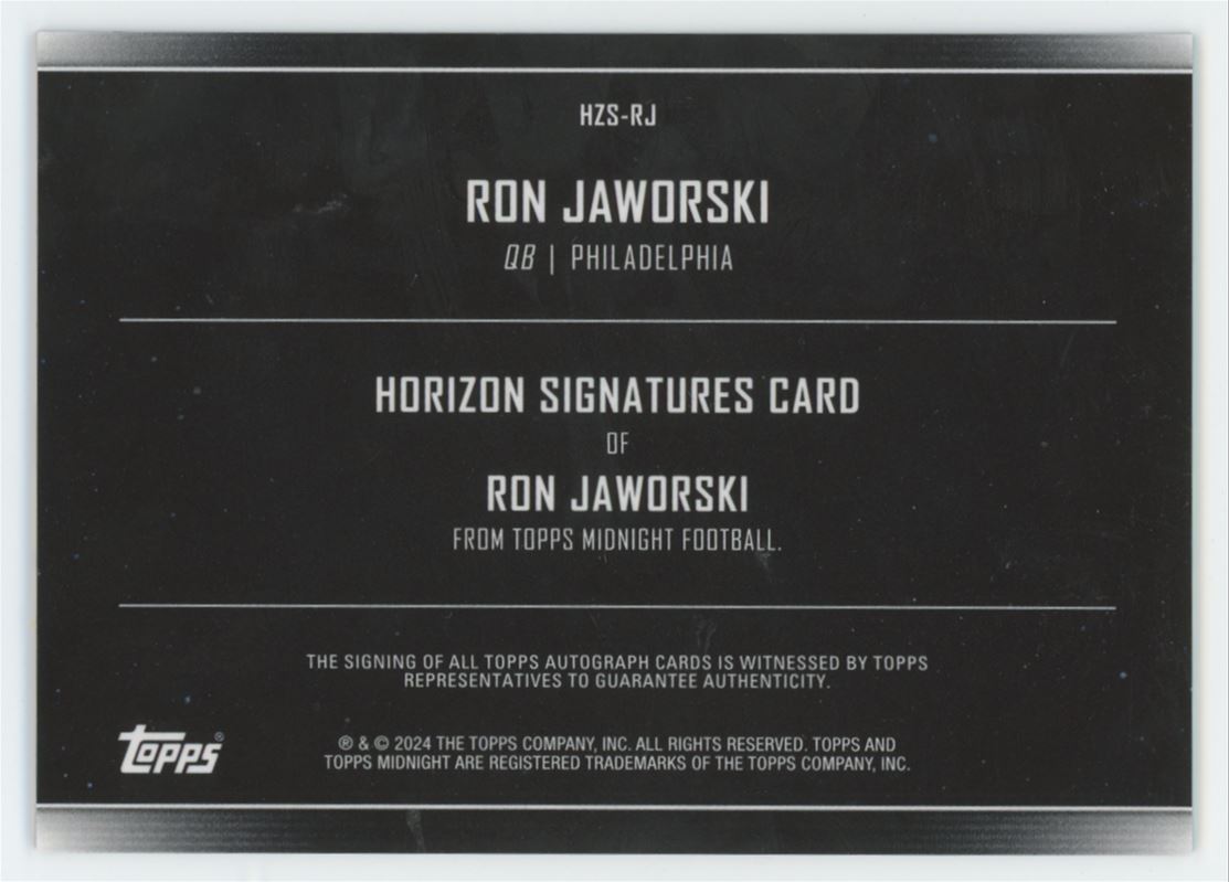 | 2024 Topps Midnight Horizon Signatures Ron Jaworski Auto 31/75 Philadelphia |