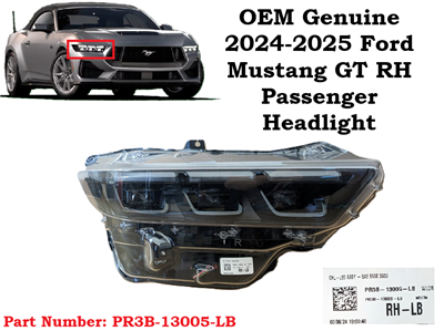 This ad is for an OEM Genuine 2024-2025 Ford Mustang GT RH Passenger LED Headlight