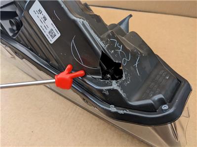 It has hole in the housing and some scratches on the lens. Please see pictures as they are of the actual item you will receive.