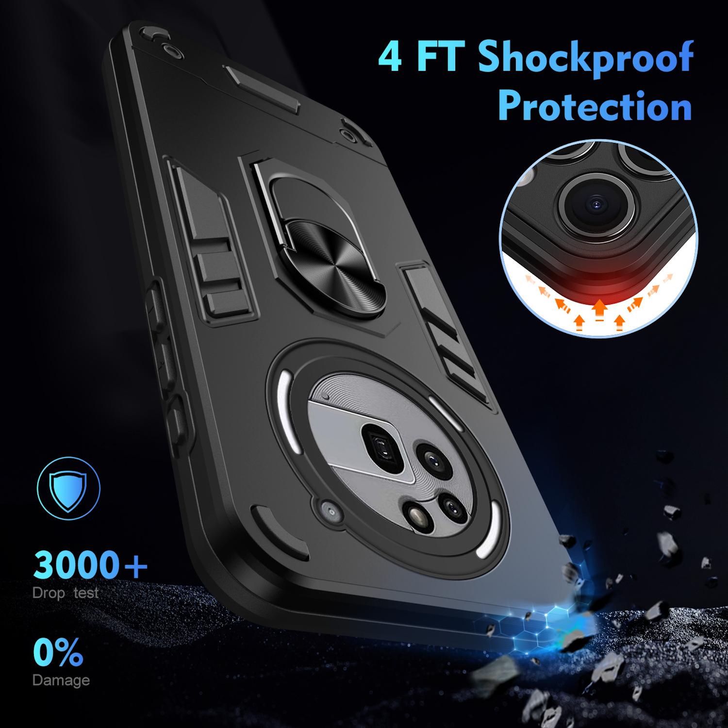 Diese stoßfeste Handyhülle für das Nothing Phone 3a Pro überzeugt durch ihre Funktionalität und Schutzwirkung. Der integrierte 360-Grad-Ringhalter erleichtert das horizontale Ansehen von Videos und bietet zusätzlichen Halt. Hergestellt aus robustem PC+Silikon, schützt die Hülle Ihr Smartphone zuverlässig vor Stößen und Kratzern. Die erhöhten Kanten bieten zusätzlichen Schutz für die Kamera, während alle Tasten und Anschlüsse leicht zugänglich bleiben.
