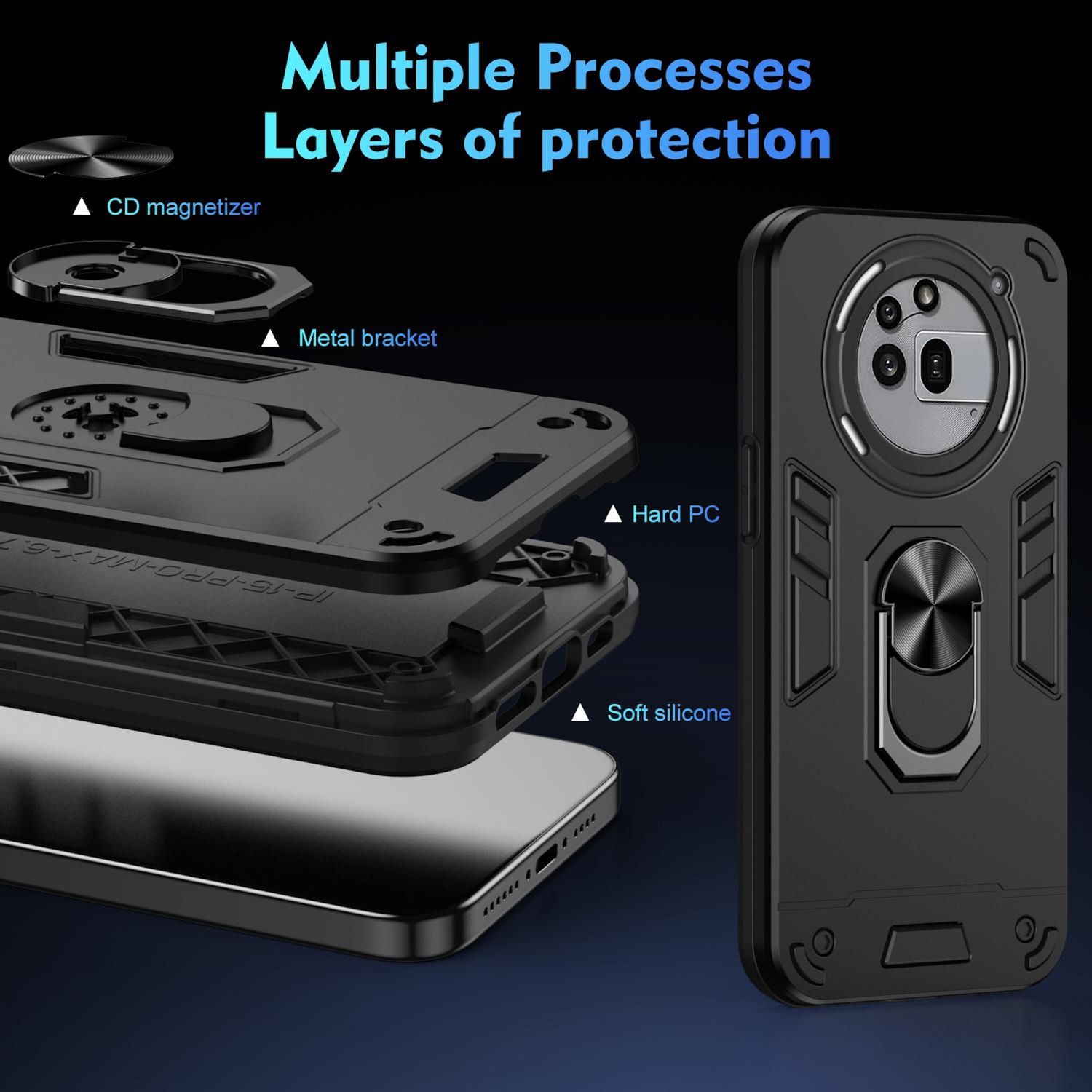 Für Nothing Phone 3a Pro Stoßfeste Handyhülle mit Metall-Ringhalter