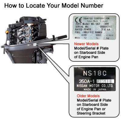 2、Engine Serial Number: Use the serial number of your outboard or boat engine to look up the correct water pump spare parts on official parts catalog or through a dealer.