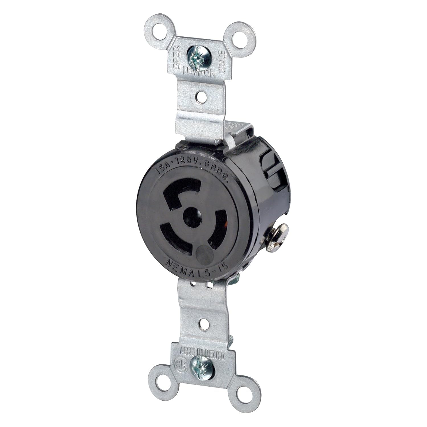 Leviton 4710 15 Amp, 125 Volt, L5-15R, 2P, 3W, Single Locking Receptacle, Industrial Grade, Grounding, Black
