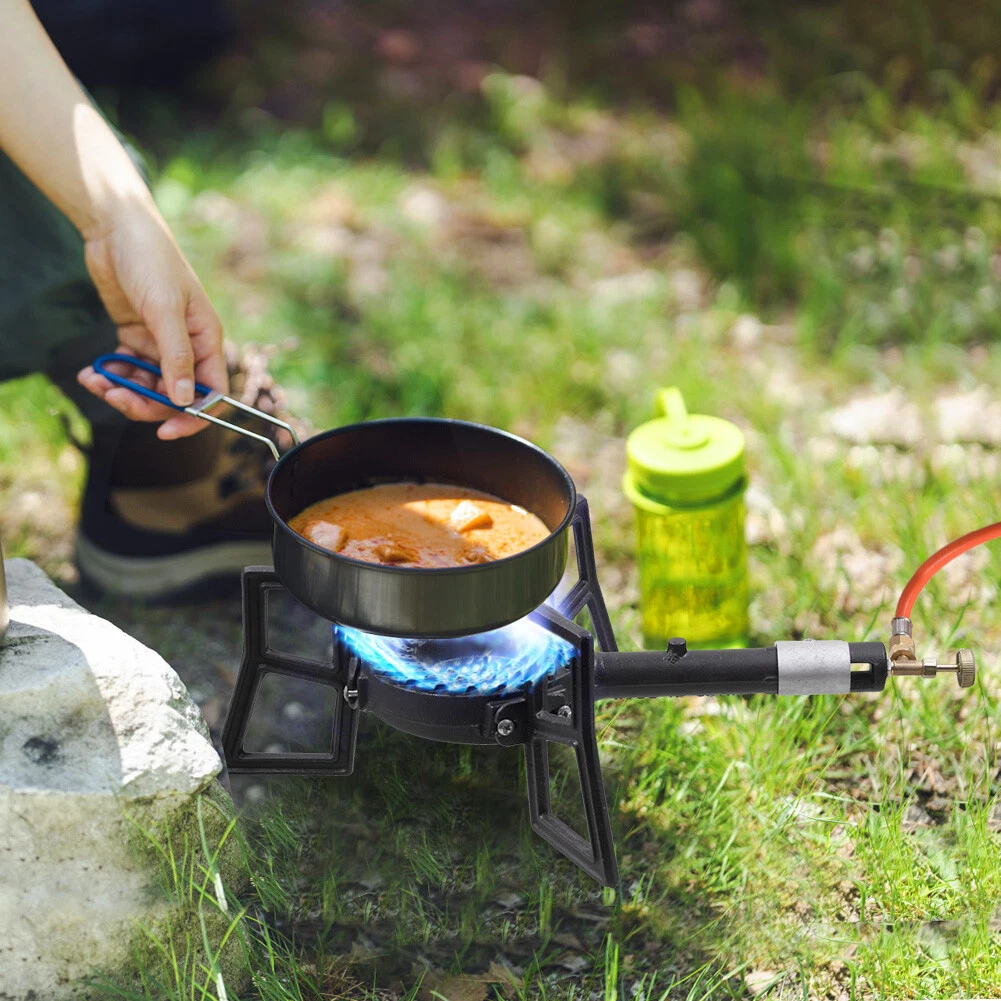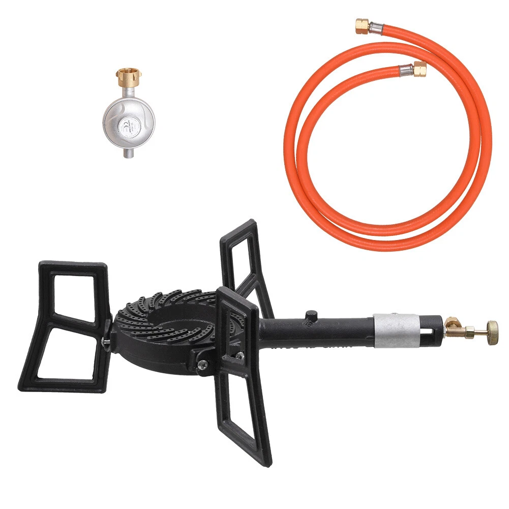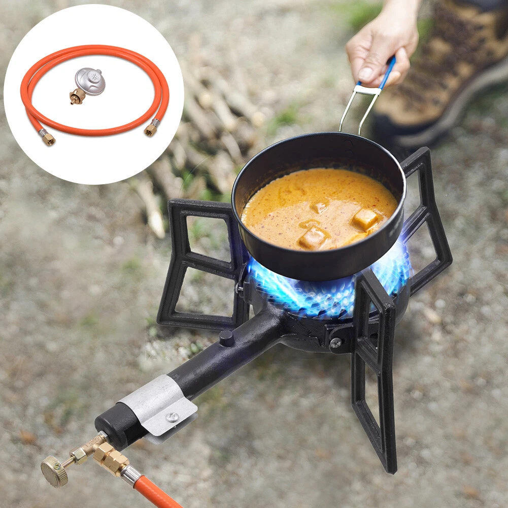 Beschreibung: Wenn Sie den idealen Begleiter für Camping und Freizeit benötigen, ist der Outdoor Gaskocher Hocker inklusive 150 cm langem Niederdruckschlauch und 50 mbar Druckregler, perfekt für Sie geeignet.Sie können den Artikel auch für Weihnachtsmärkte, Imbiss-Stände oder Baustellen benutzen. Der Hockerkocher ist aus hochwertigem Gusseisen gefertigt und verfügt über einen stabilen Rahmen aus Stahlblech für den sicheren Einsatz. Mit diesem Brenner können Sie Speisen schnell und einfach zubereiten. Den Gaskocher können Sie idealerweise auf dem Campingplatz oder zu Hause nutzen. Das sehr stabile Gusseisen macht den Campingkocher für höhere Belastungen und Dauereinsatz geeignet. Der 15 cm breite gusseiserne Brenner in der Mitte des Kochers ermöglicht ein schnelles und effizientes Kochen. Verwendbar mit Butan/Propan - Gas oder LPG-Gemisch (Flüssiggas) Dieser praktische Gaskocher ist die ideale Lösung für Camping oder andere Outdoor-Aktivitäten. Tragbar und platzsparend zu tragen, einfach zu installieren und zu entfernen, arbeitssparend. Arbeitet mit Propan oder Butan. Campinggaskocher eignen sich für Picknicks, Gartenpartys, Familienfeiern oder Campingaktivitäten im Freien, Wandern, Grillen. Die Flamme kann durch Drehen des Knopfes am Zünder während des Kochens eingestellt werden. Die Brenner verteilen die Hitze gleichmäßig über die Mitte und die Ränder der Pfanne für ein perfektes Garen.