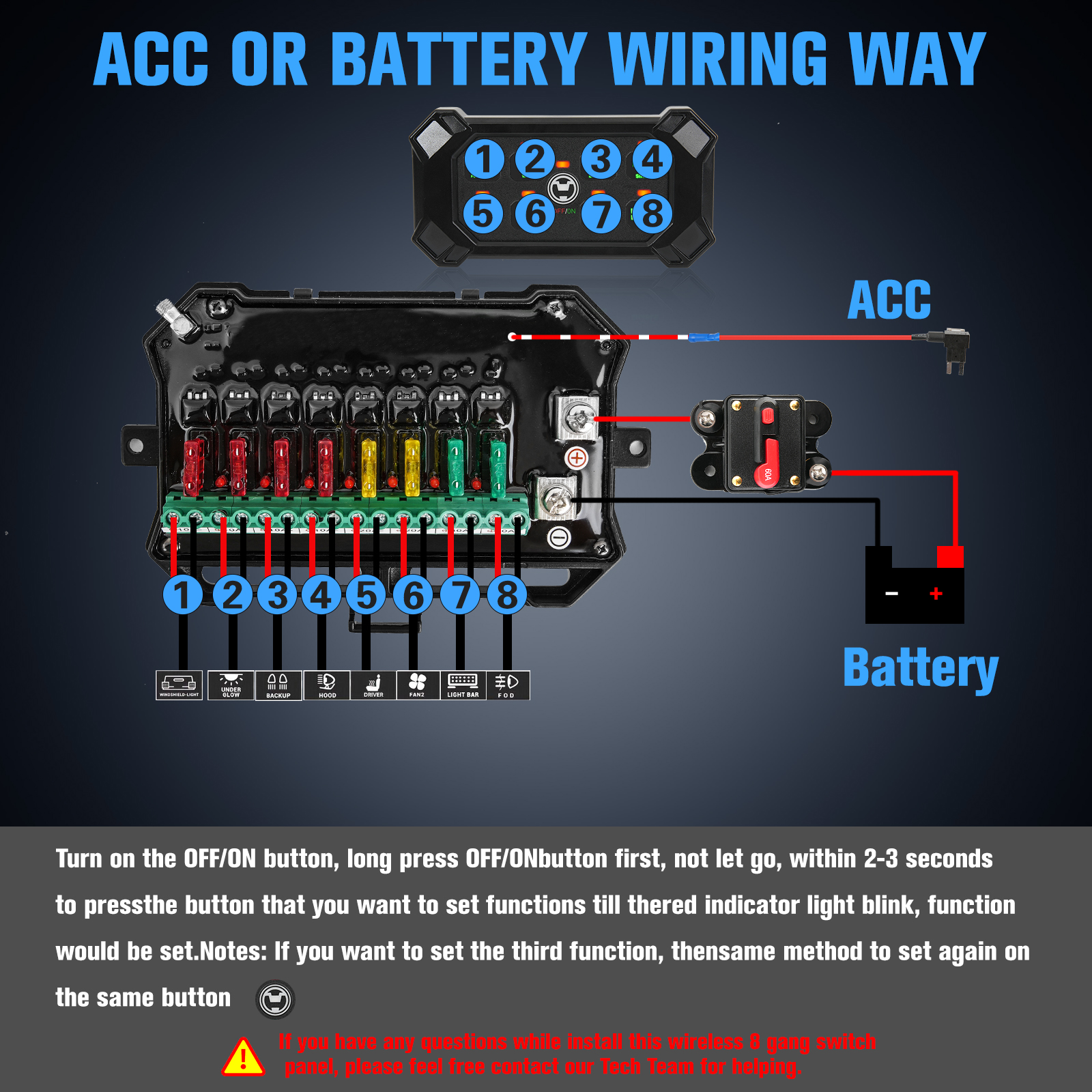 5. Wiring Has Never Been Easier - As you know our cordless feature has saved you some wiring hassle, but that's not all, you can choose to connect it to ACC or Battery for power source, simply slide the switch to ACC or Battery! This flexible power supply design avoids lots of messy wires.