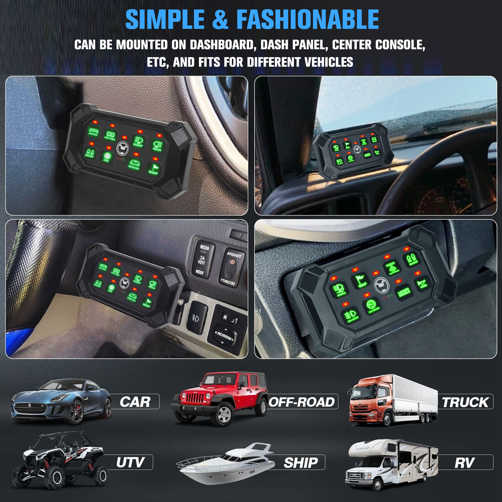 Whether you're using it in an RV, marine vessel, car, truck, off-road vehicle, ATV/UTV, boat, yacht, caravan, or other applications, the MICTUNING P1s Wireless Switch Panel is your ultimate control solution.