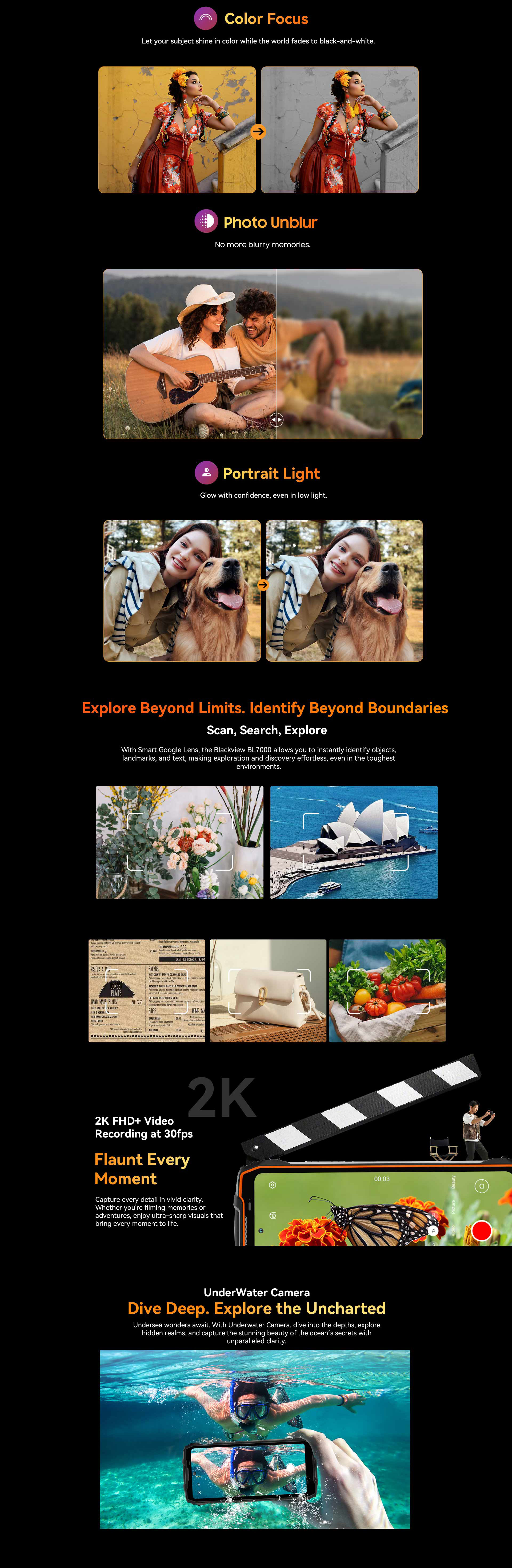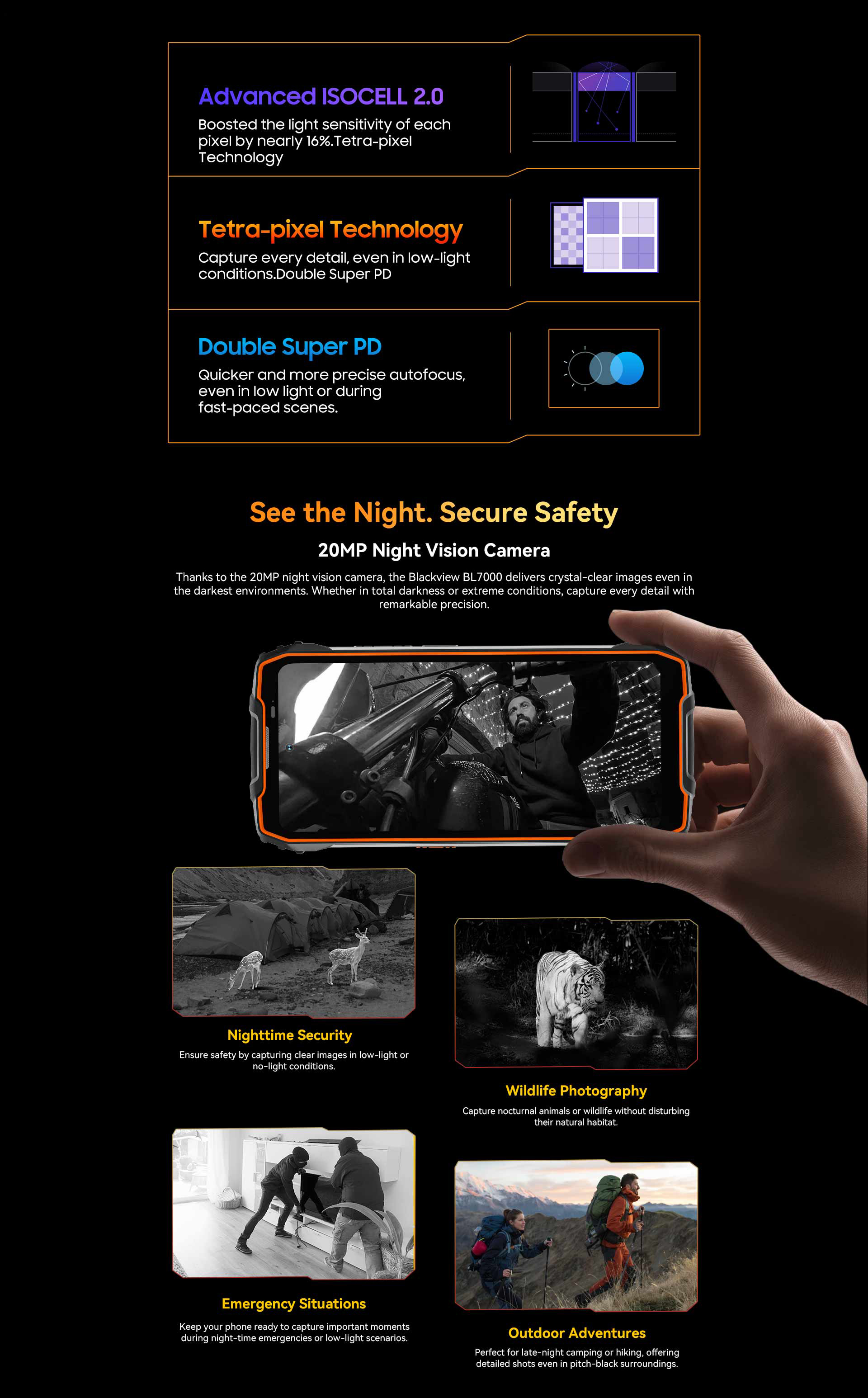 include the world's first 5G game-dedicated rugged phone, the world's first thermal rugged phone, the world's first fastest budget mainstream smartphone for taking pictures, and the first Blackview night vision rugged phone.