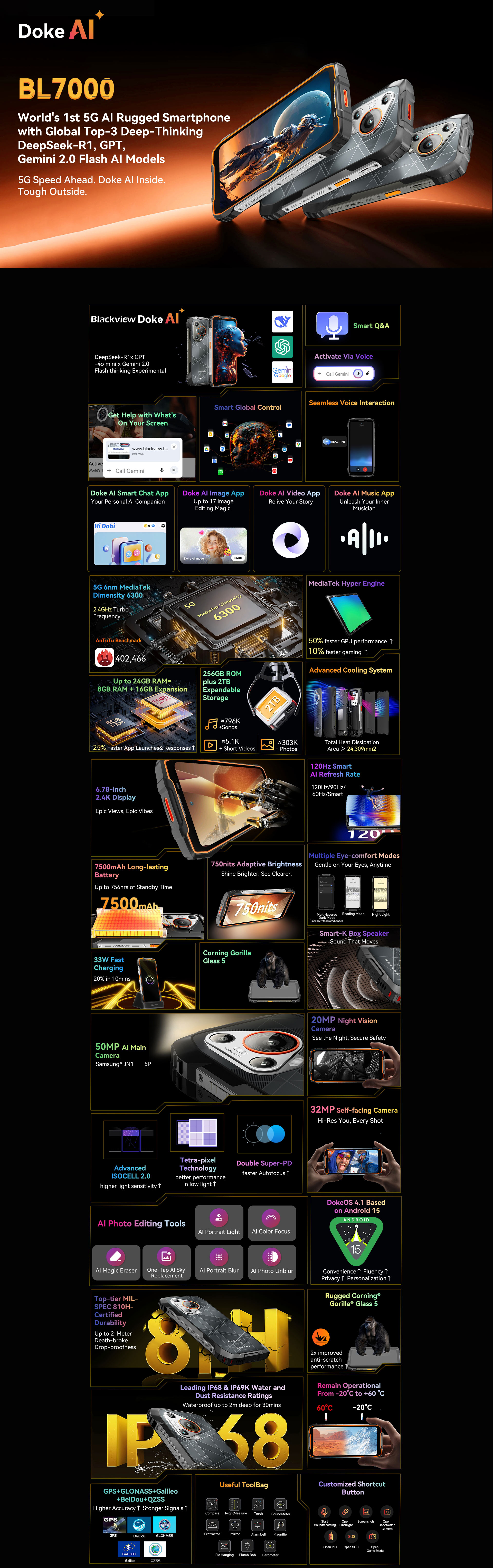 Blackview BL7000 Rugged Smartphone ----- Doke AI 24(8+16)GB+256GB