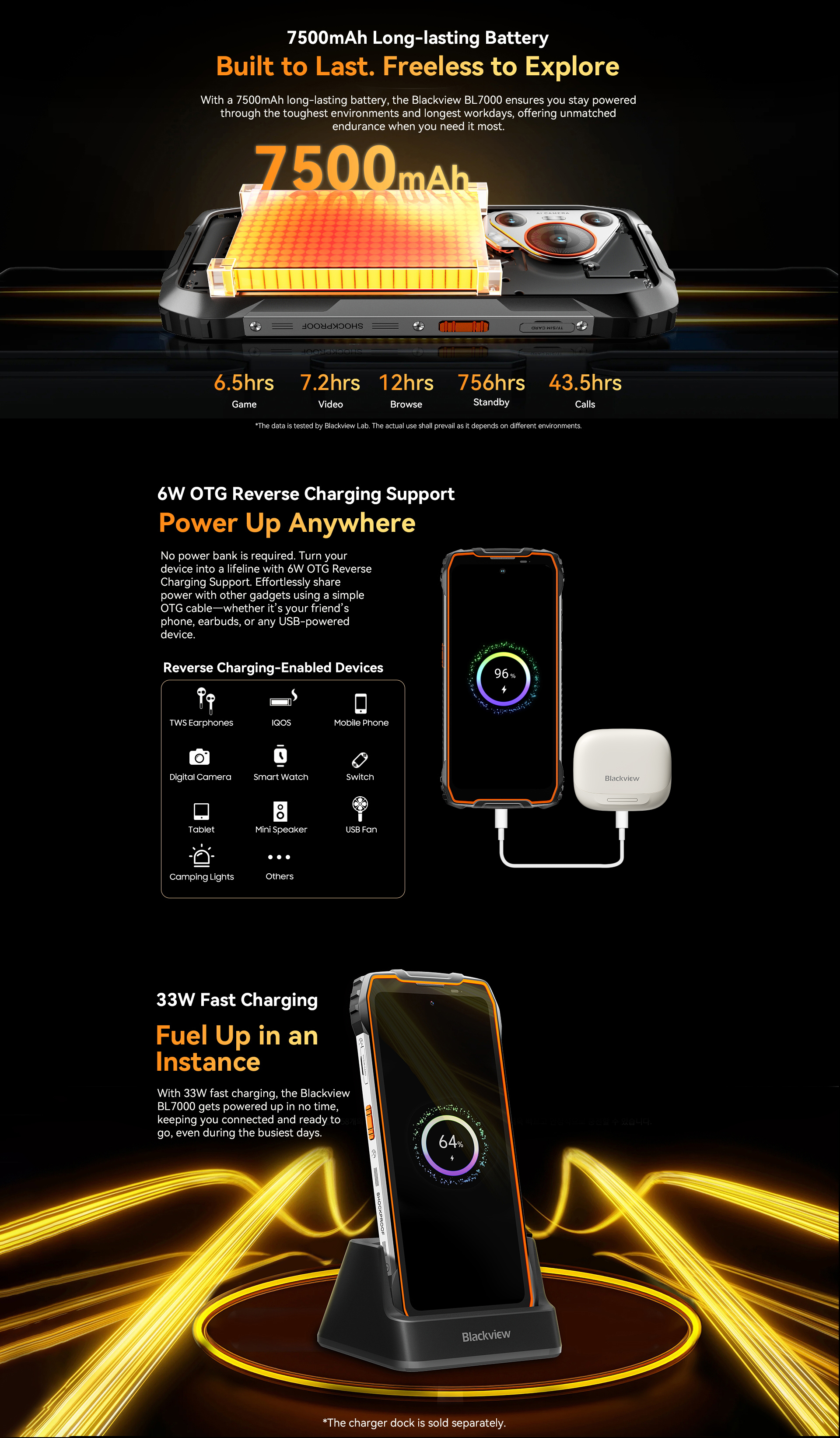 Battery ------7500mAh with 33W fast charging 756h standby