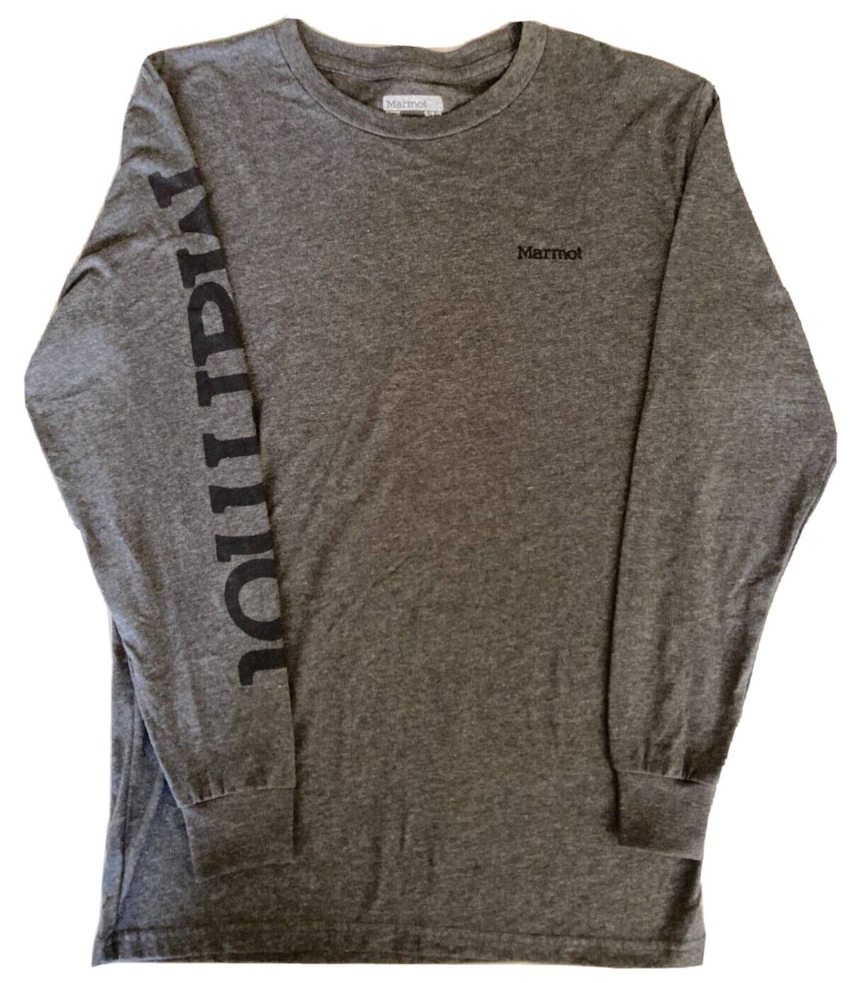 MARMOT Men's Logo Sleeve Graphic Long-Sleeve T-Shirt in Charcoal Heather-Small