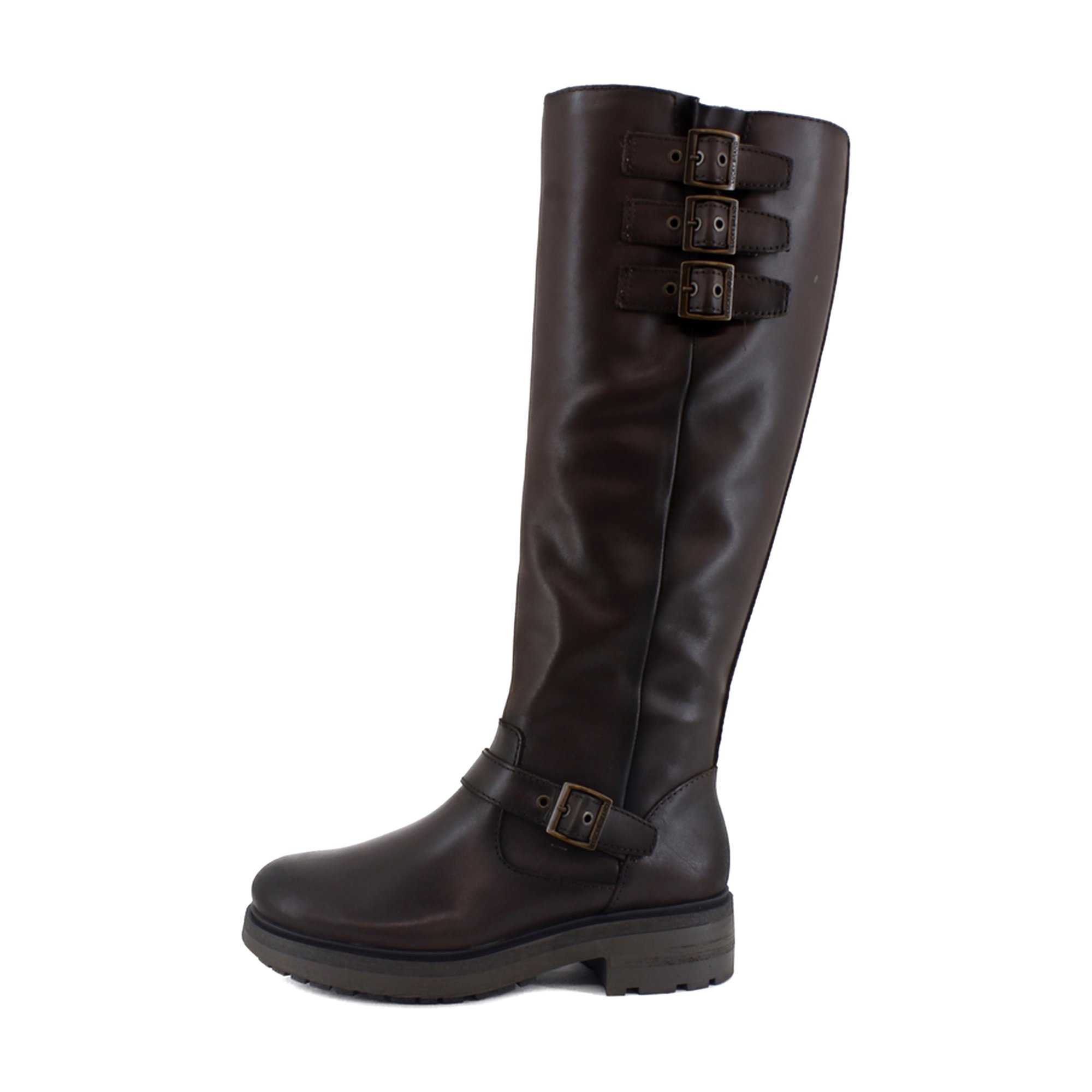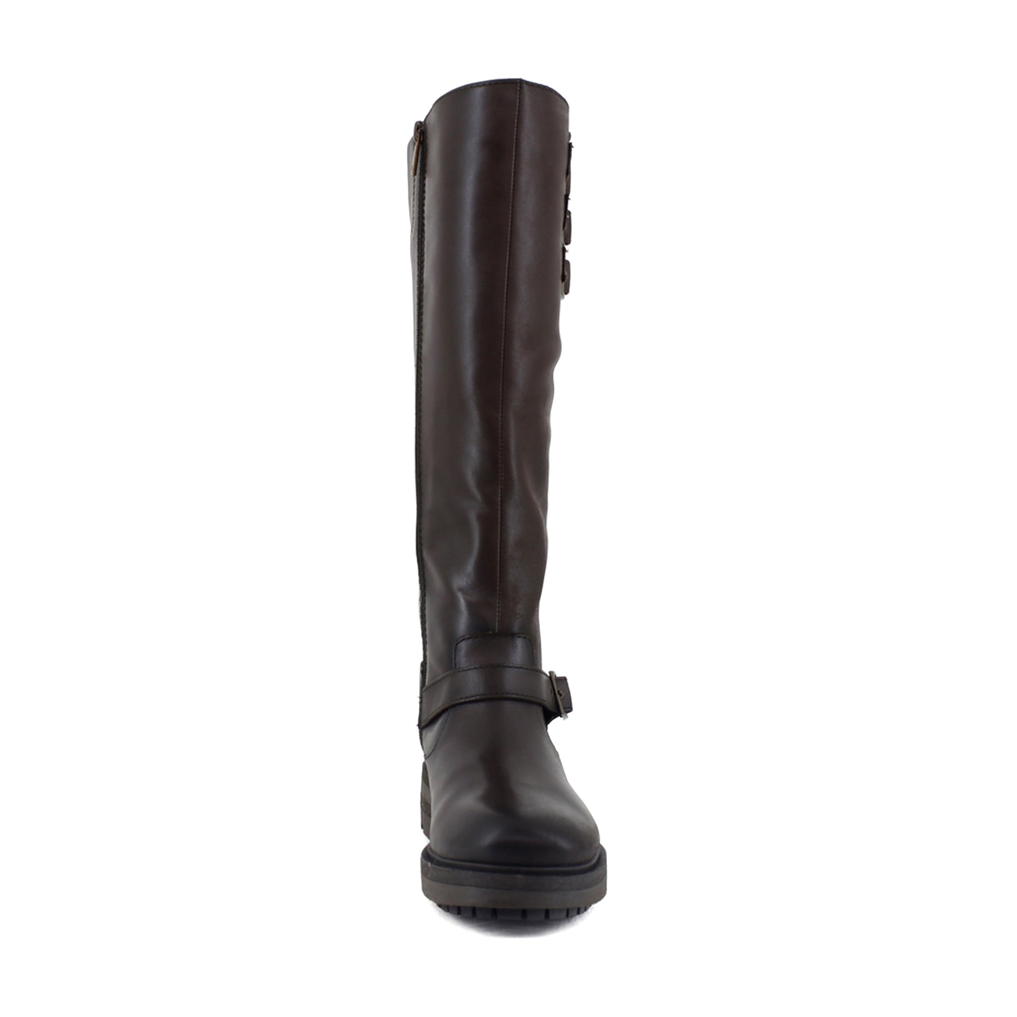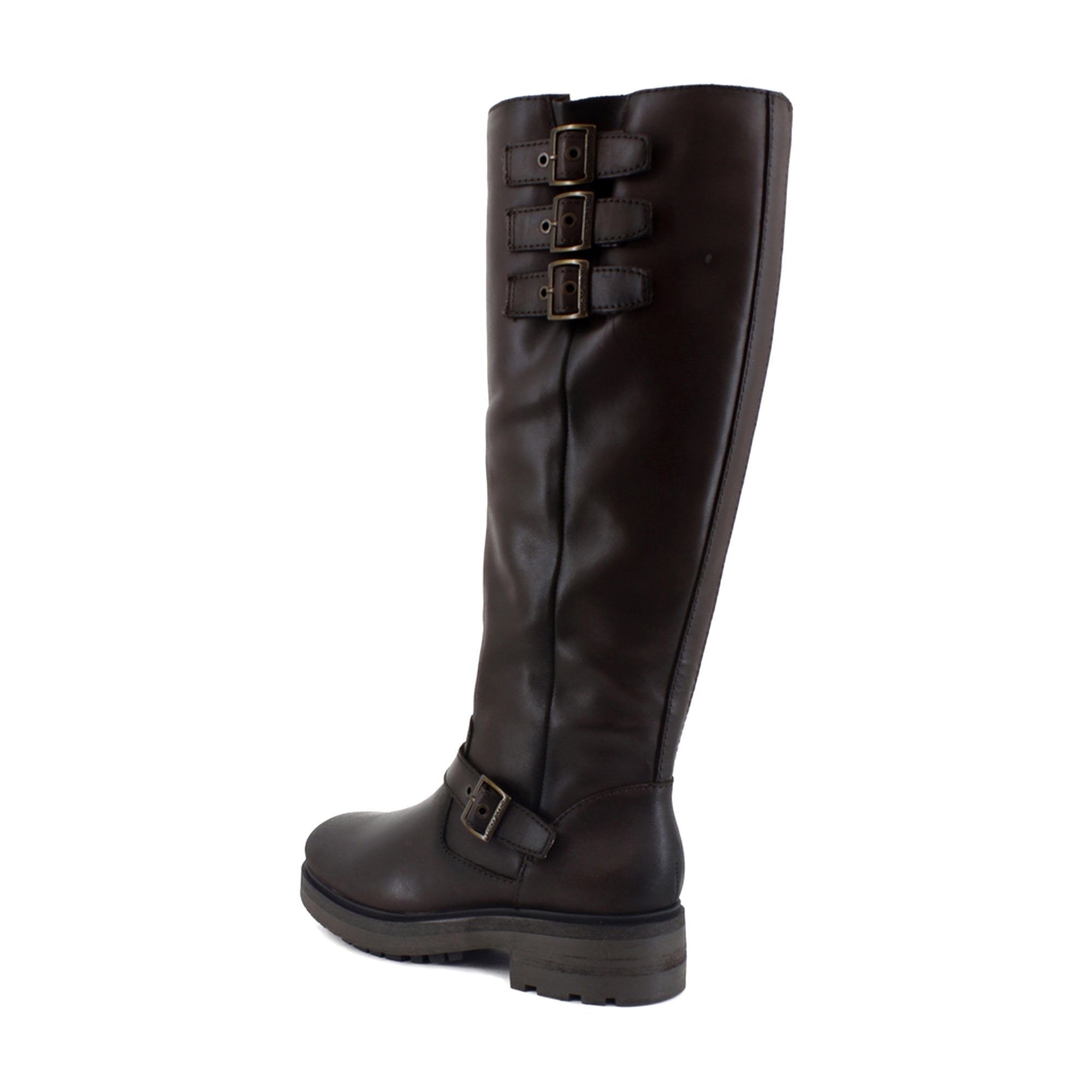 Stride in style and comfort with the Lucky Brand Citere High Boot. Crafted from supple leather, this knee-high boot features triple buckle straps and a thick block heel for an elevated look. Its side zip closure ensures easy wear, making it the perfect addition to your chic, everyday ensemble.
