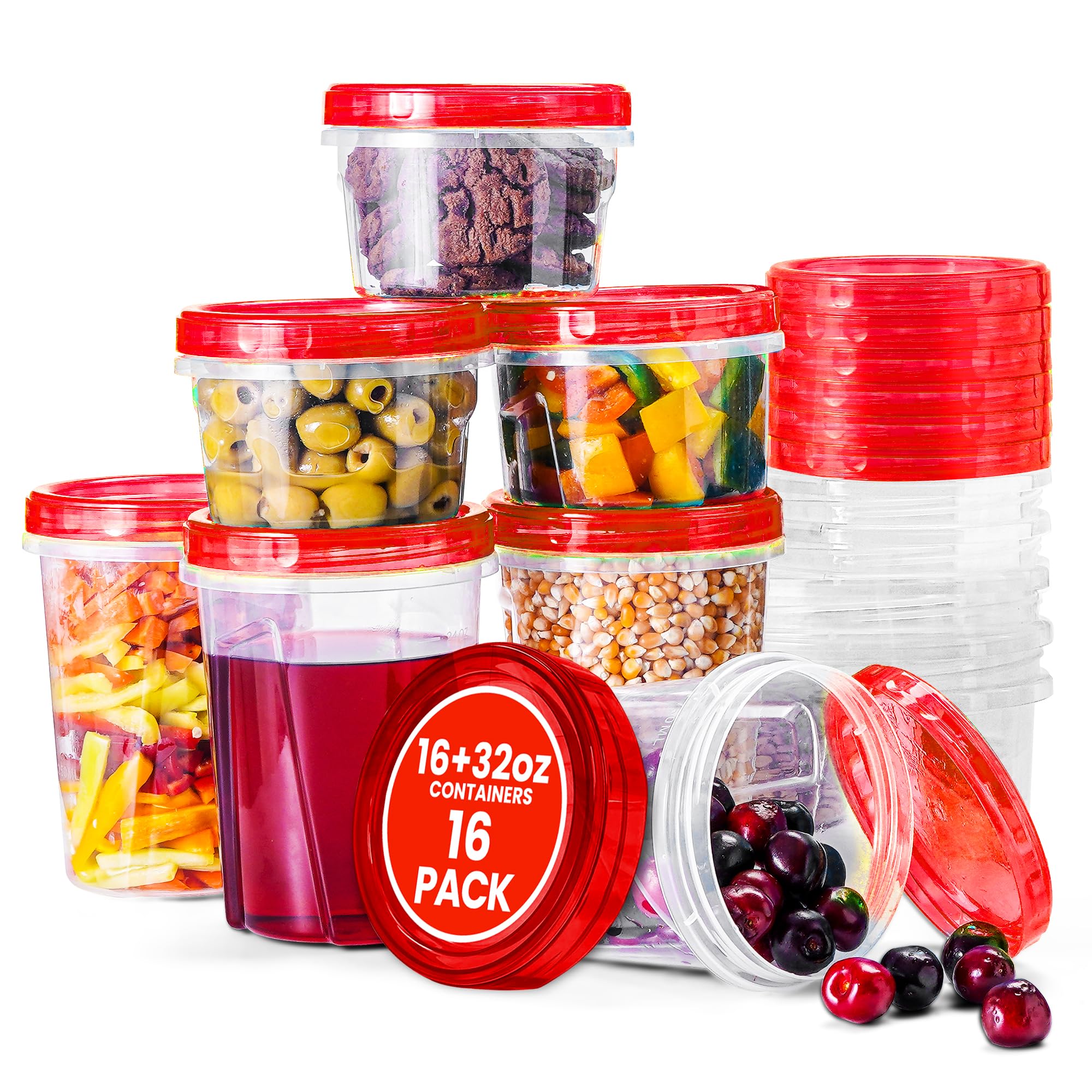 16 PCS Freezer Storage Containers-[16 * 32 & 16 oz] Plastic Food Storage Containers with Twist Top Lids-Leakproof Jars-Deli Container Stackable Meal Prep Reusable Box for Lunch,Soup,Oats,Gym