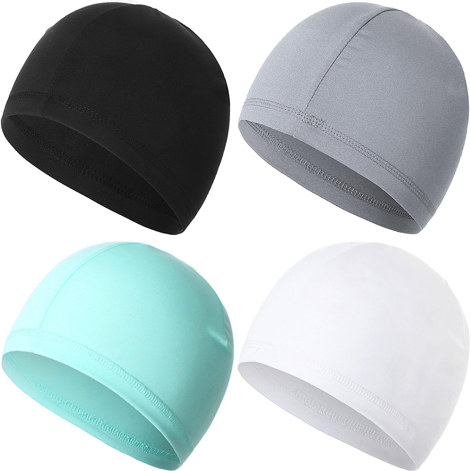 4 Pieces Skull Caps Running Cycling Beanie Hats Breathable Helmet Liner Sleep Hats for Men Women J Black+Light Grey+Sky Blue+White