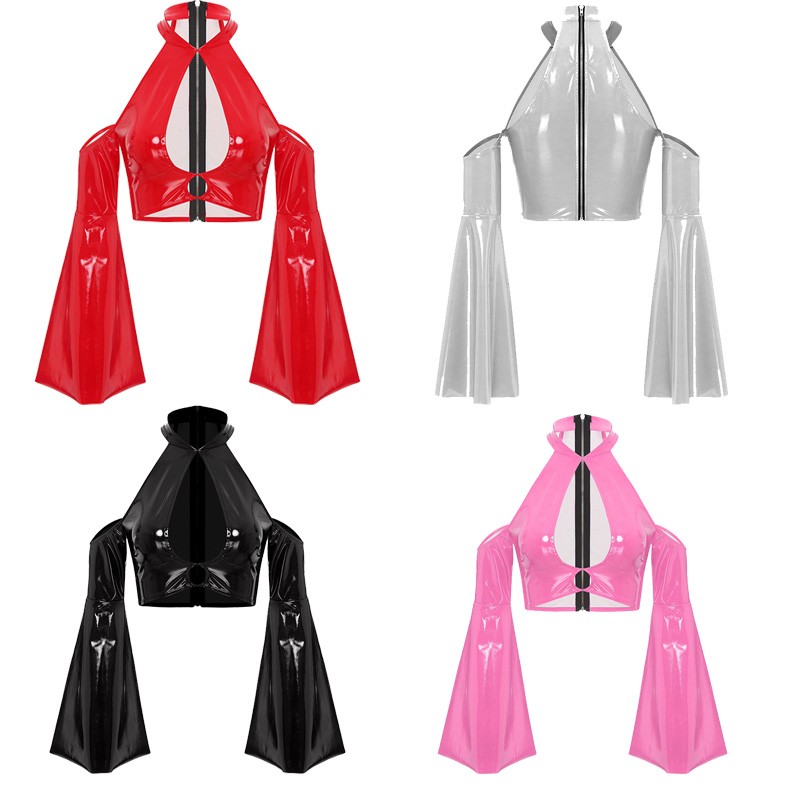 Crafted from high-quality PU and a touch of polyester, the fabric has a wet-looking glossy finish, bringing a trendy and eye-catching visual effect.
