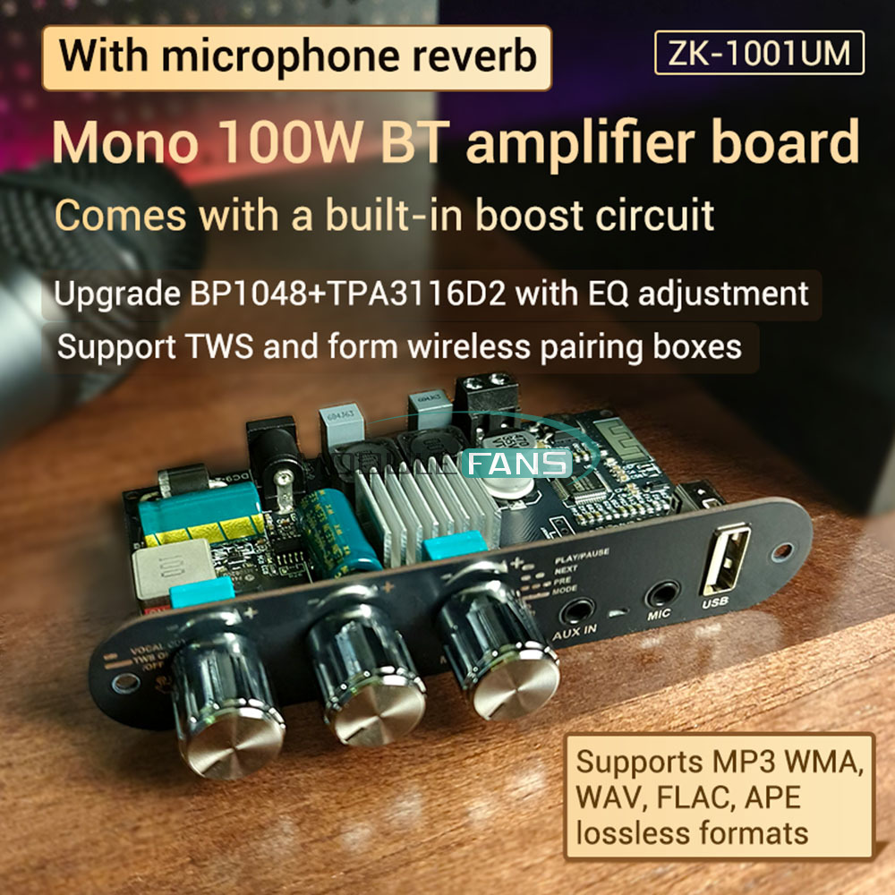 NEW ZK-1001UM 100W Mono Bluetooth Power Amplifier Board BP1048+TPA3116D2 Module