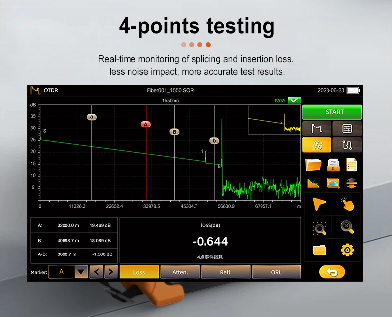 --- 4 points testing . Real time monitoring of splicing and insertion loss , less noise impact , more accurate test results .
