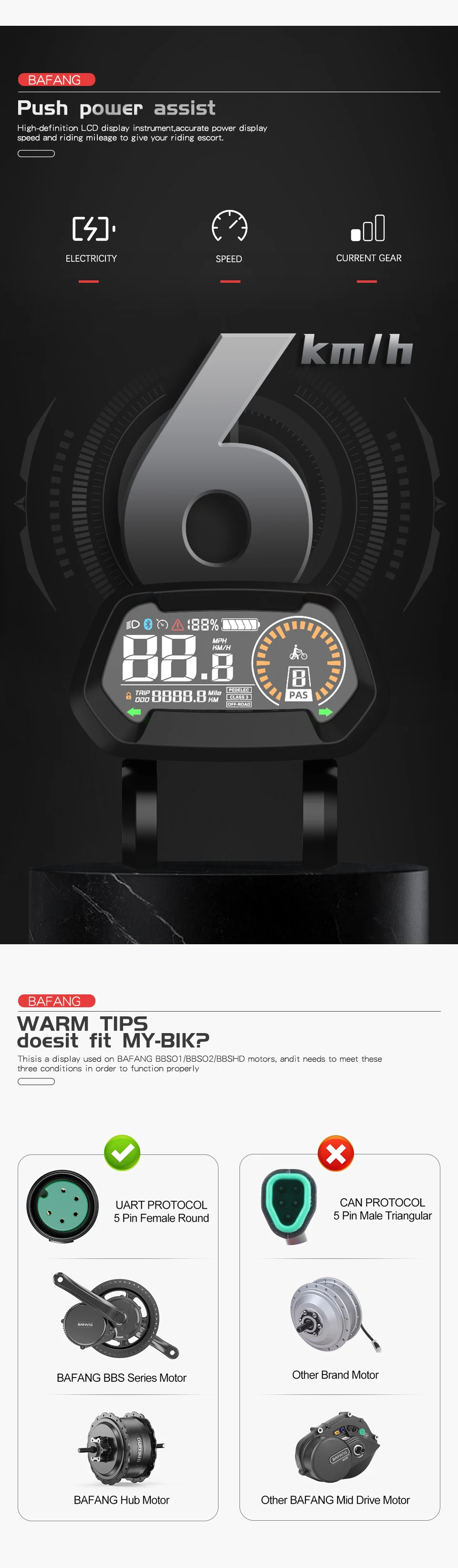 ●[ COMPATIBILITY ] This small-sized ebike display DZ43is only compatible with BAFANG elctric bike motor with UART 5.0~5.8 protocol . If you are not sure , please message us before purchasing