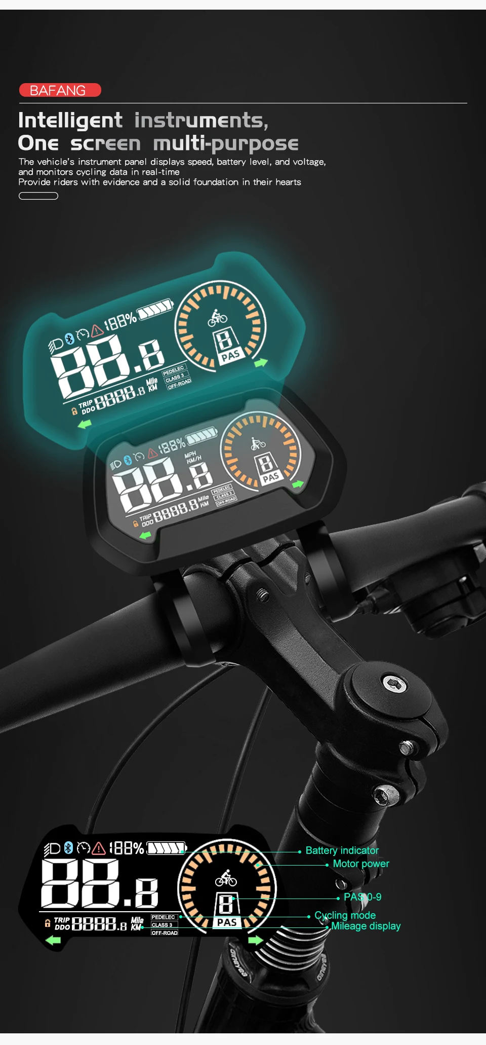 ●[ Comprehensive Data Display ] The DZ43displays a variety of important data , including speed , headlight , battery indication , helping you stay informed and safe during your ride .