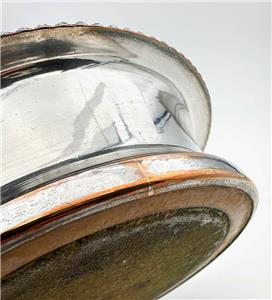 Condition: Good. Dings, surface scratches, and tarnishing. Warm copper tones bleeding through. Wear commensurate with age and use. Please see photos and if you have any further questions, do not hesitate to ask.