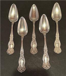 5 ANTIQUE ORANGE BLOSSOM FRUIT SPOONS WM. ROGER'S & SON NOV. 29.1910