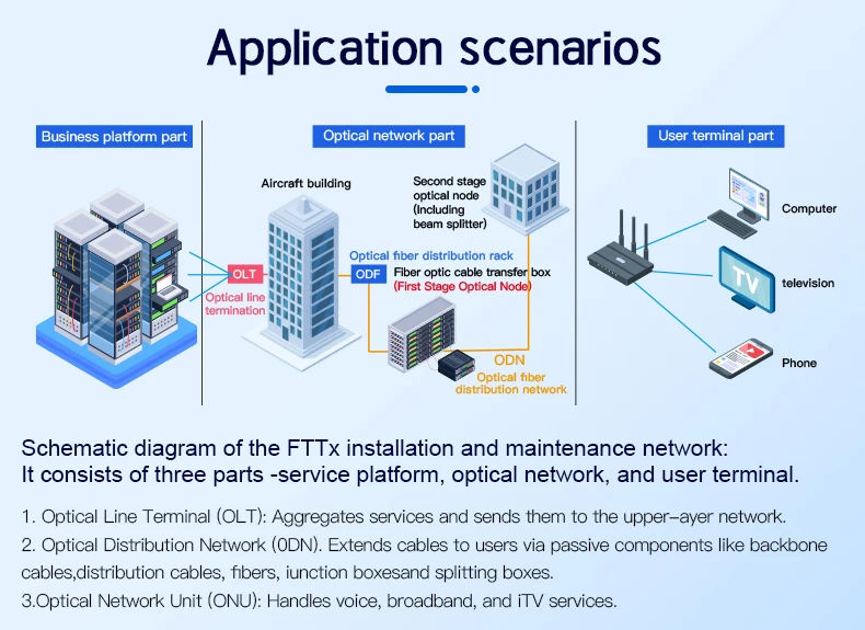 --- It's used for FTTx network , communication construction , weak current , installation and maintenance works , broadband construction in residential area , monitoring construction , troubleshooting