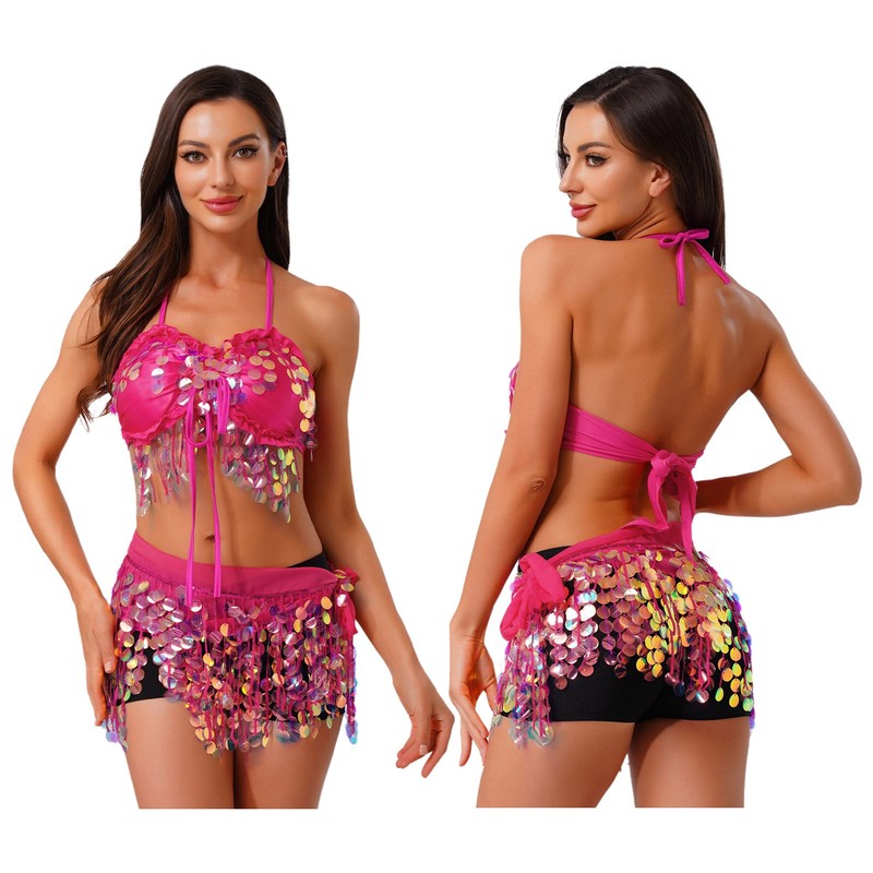 This 2-piece set is perfect for belly dance, oriental dance, Latin classes, or any other dance performance, as well as for themed parties and events.