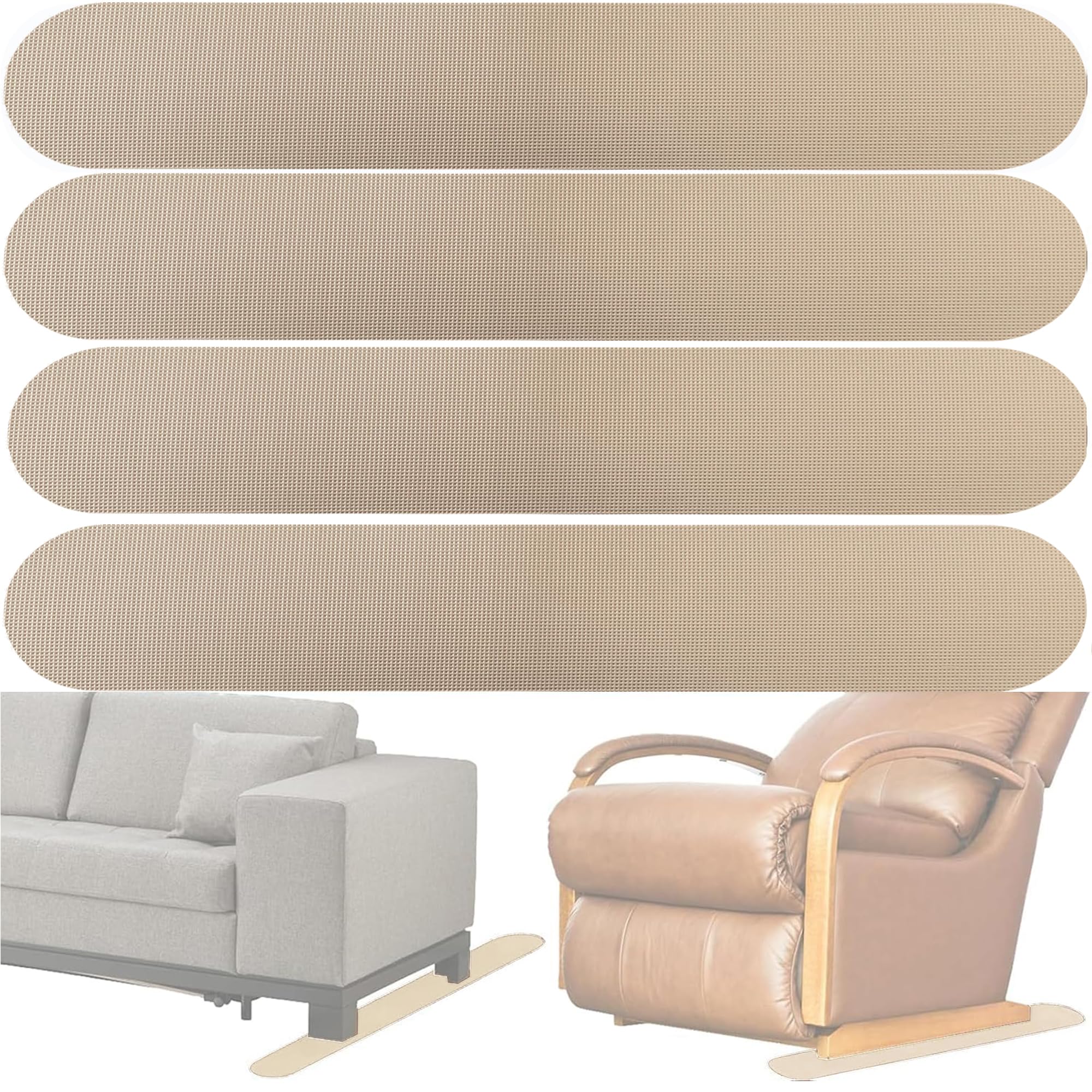 SAVE MONEY AND ENERGY YOU SPEND TO PROTECT THESE WITH OUR FURNITURE PADS. Anti Skid Furniture Pads for hardwood floors EOURLIFE does keep the furniture feet from sliding around the floors, forget about scratches in your lovely home. Keep Couch Cushions From Sliding,Rocking Chair Floor Protectors,Furniture Grippers No Slide WHAT DO EOURLIFE RUBBER FURNITURE PADS DO FOR YOUR HOME? DIVERSITY SIZES - each pad can be cut easily to fit your presonal need. EFFECTIVE PADS - No more the annoying scraping sound of a chair or moving furniture is pushed against the hard floor help you to reduce noise. EASY TO USE - it can be placed under the foot of your furniture and no need to use any adhesive or nails. HIGH-QUALITY MATERIALS - made of high-quality rubber, the pad has strong friction to stop the furniture moving and its soft to leave zero damage to your furniture and floors. Package includes: 4 pcs- 4.73x 30 inch anti-slip furniture pad