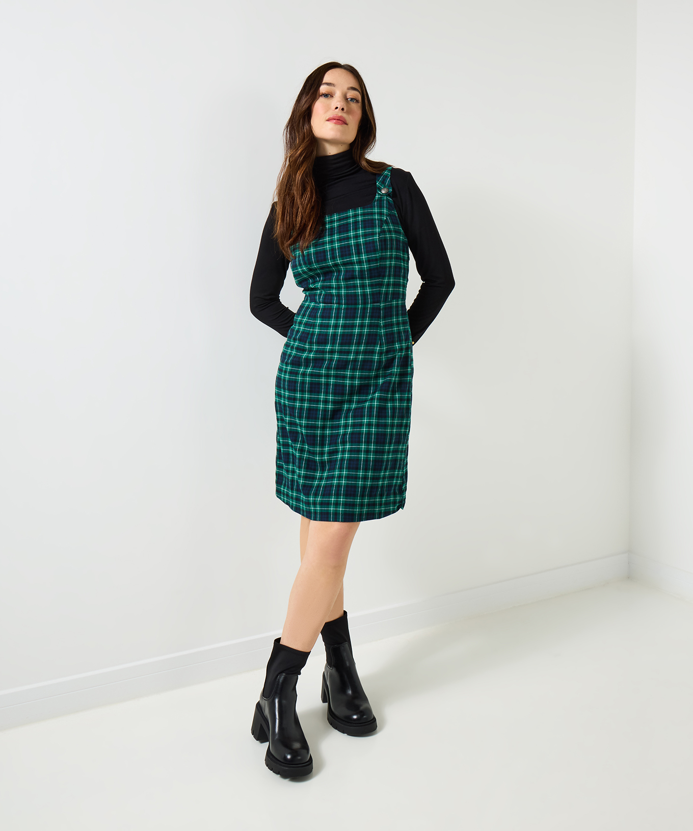 As soon as autumn hits, reach for our check pinafore dress and create endless seasonal looks.