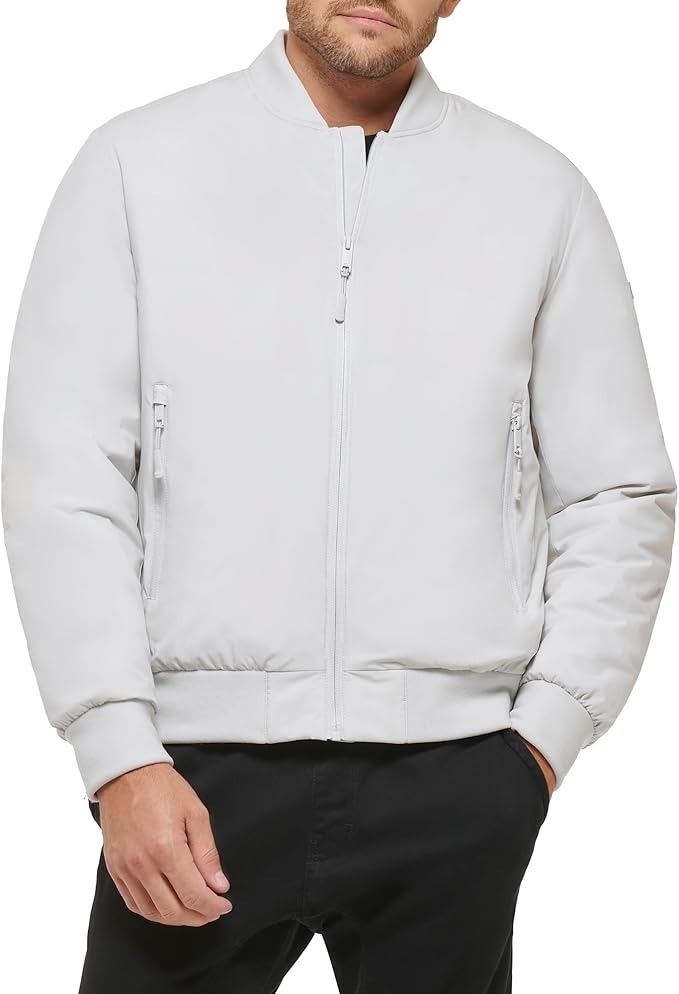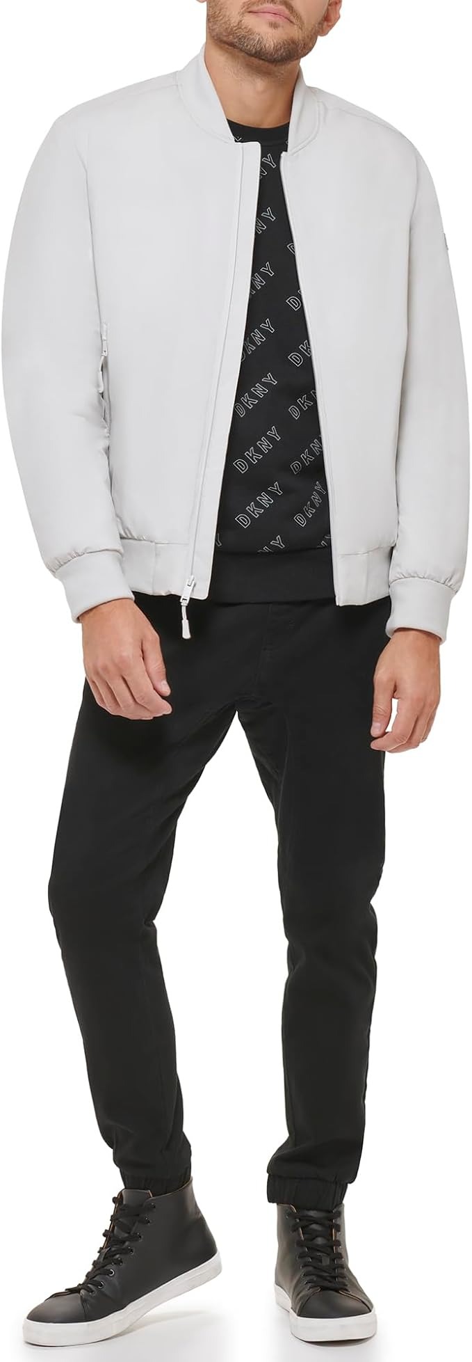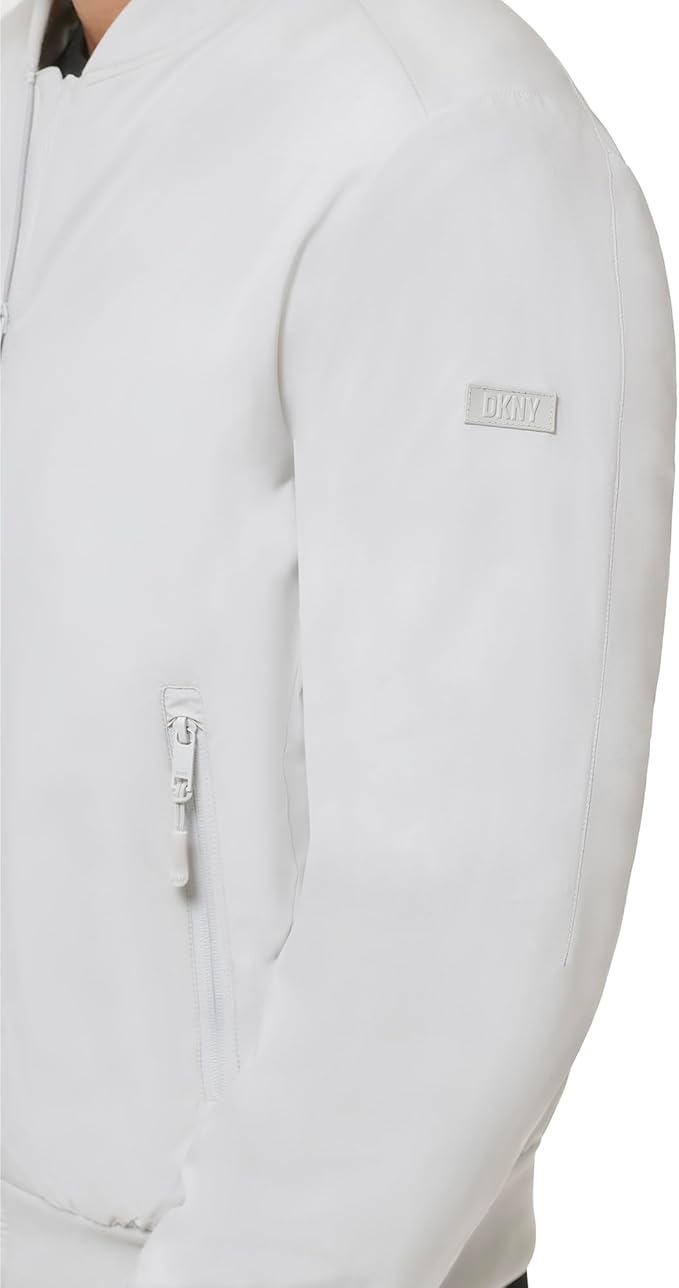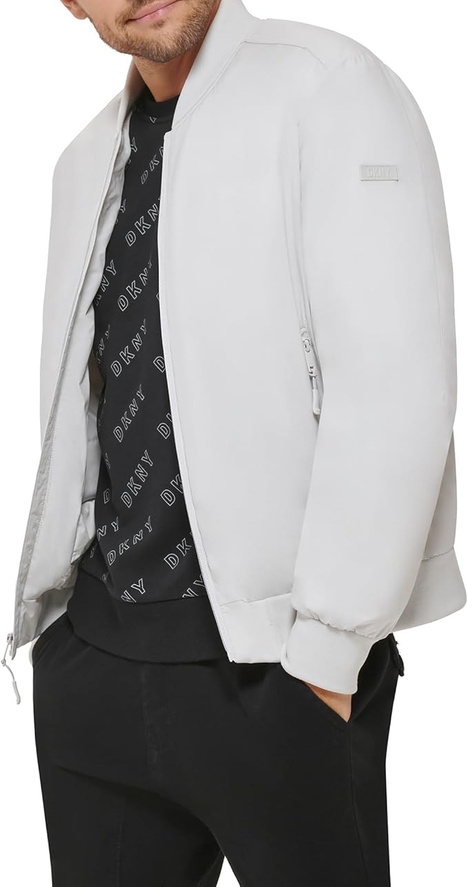 DKNY Men's Lightweight Stretch Bomber Jacket in Ice Gray-Large