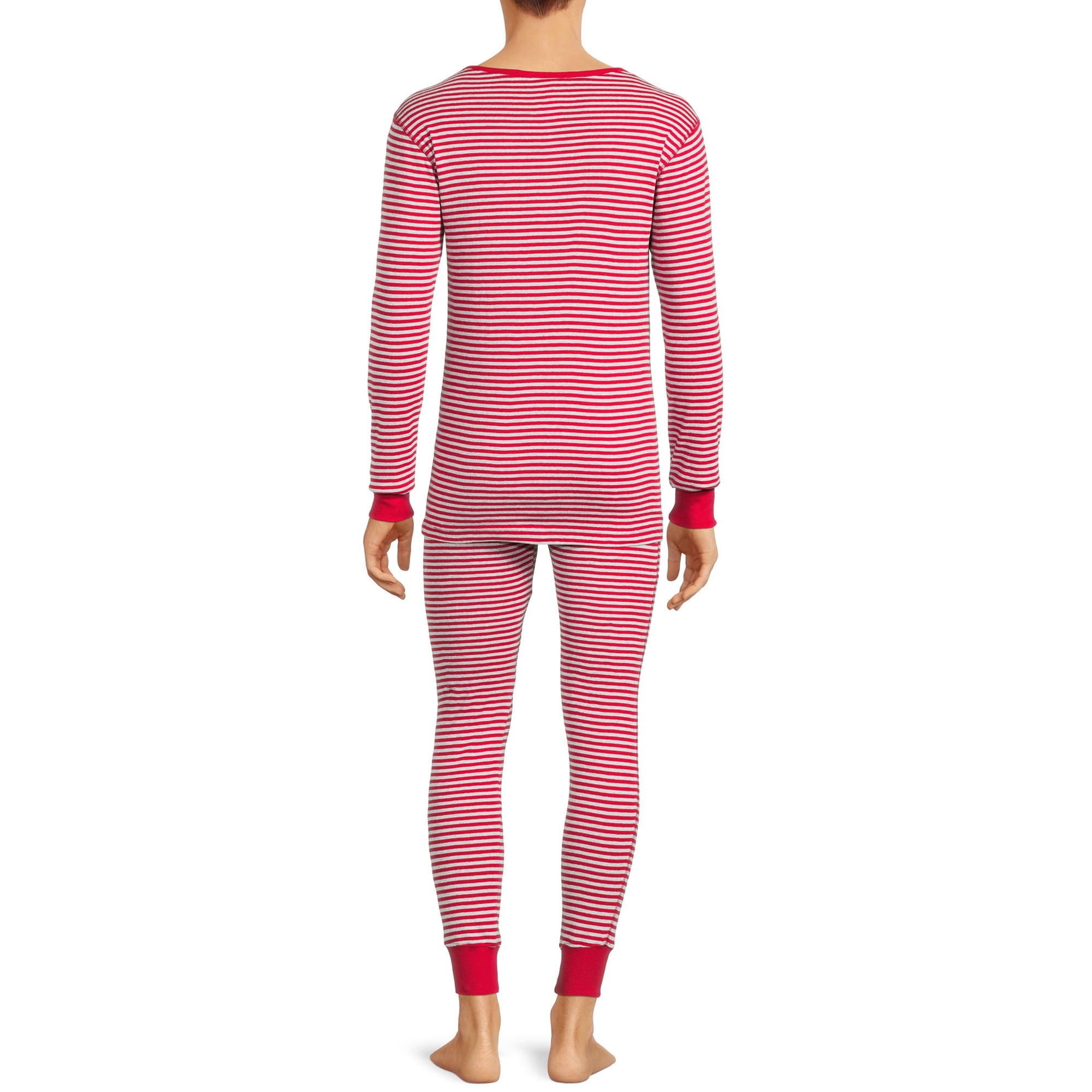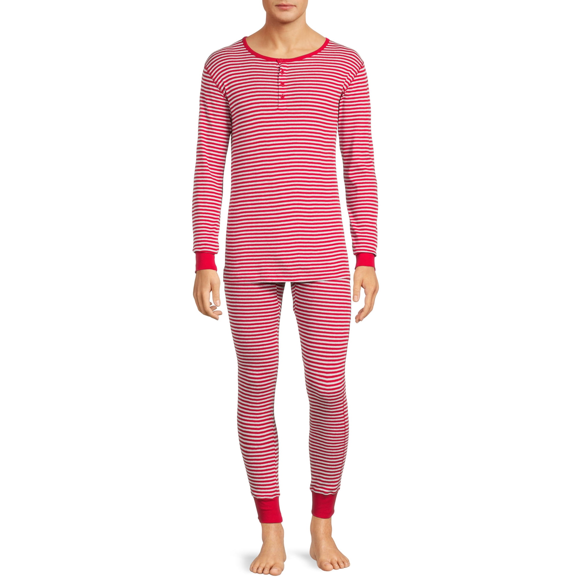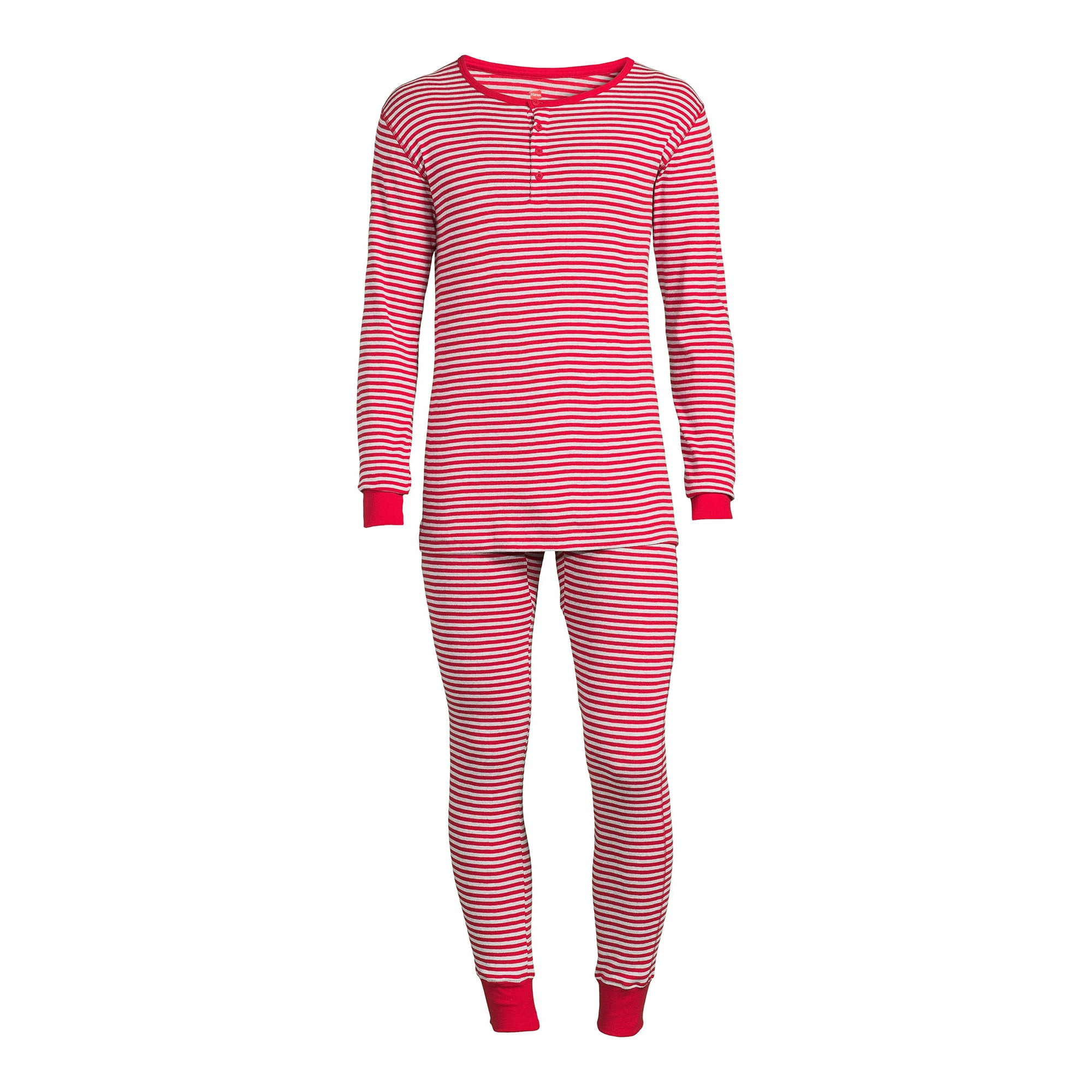 Hanes Men's Long John Sleep Pajamas, 2-Piece Set - Light Red-2XL