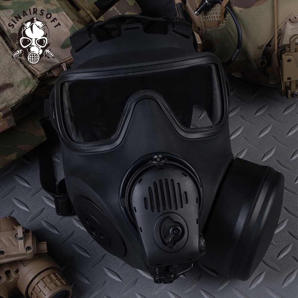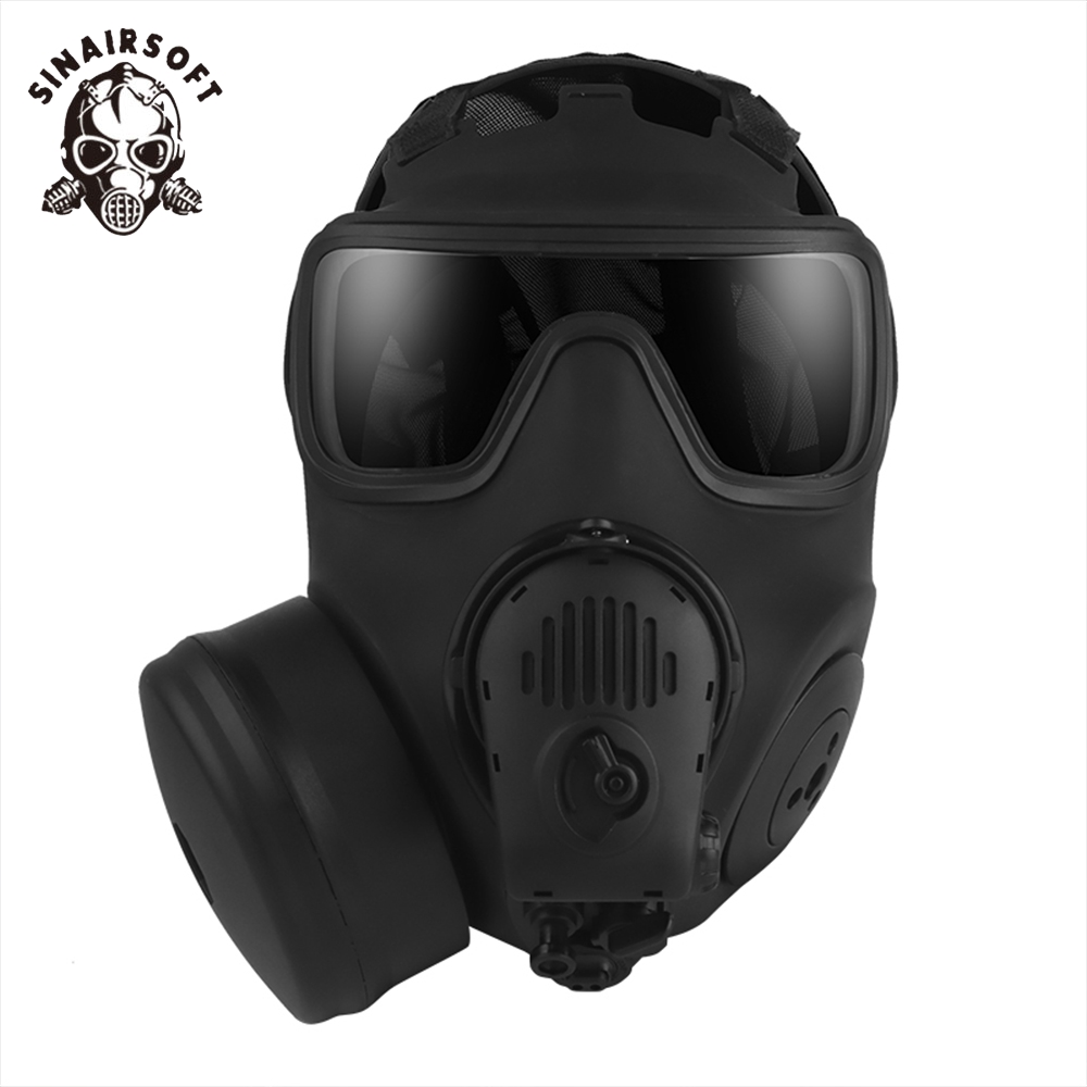 Tactical Fan Gas Full face Mask Twin Port Respirator Mask Airsoft Shooting CS