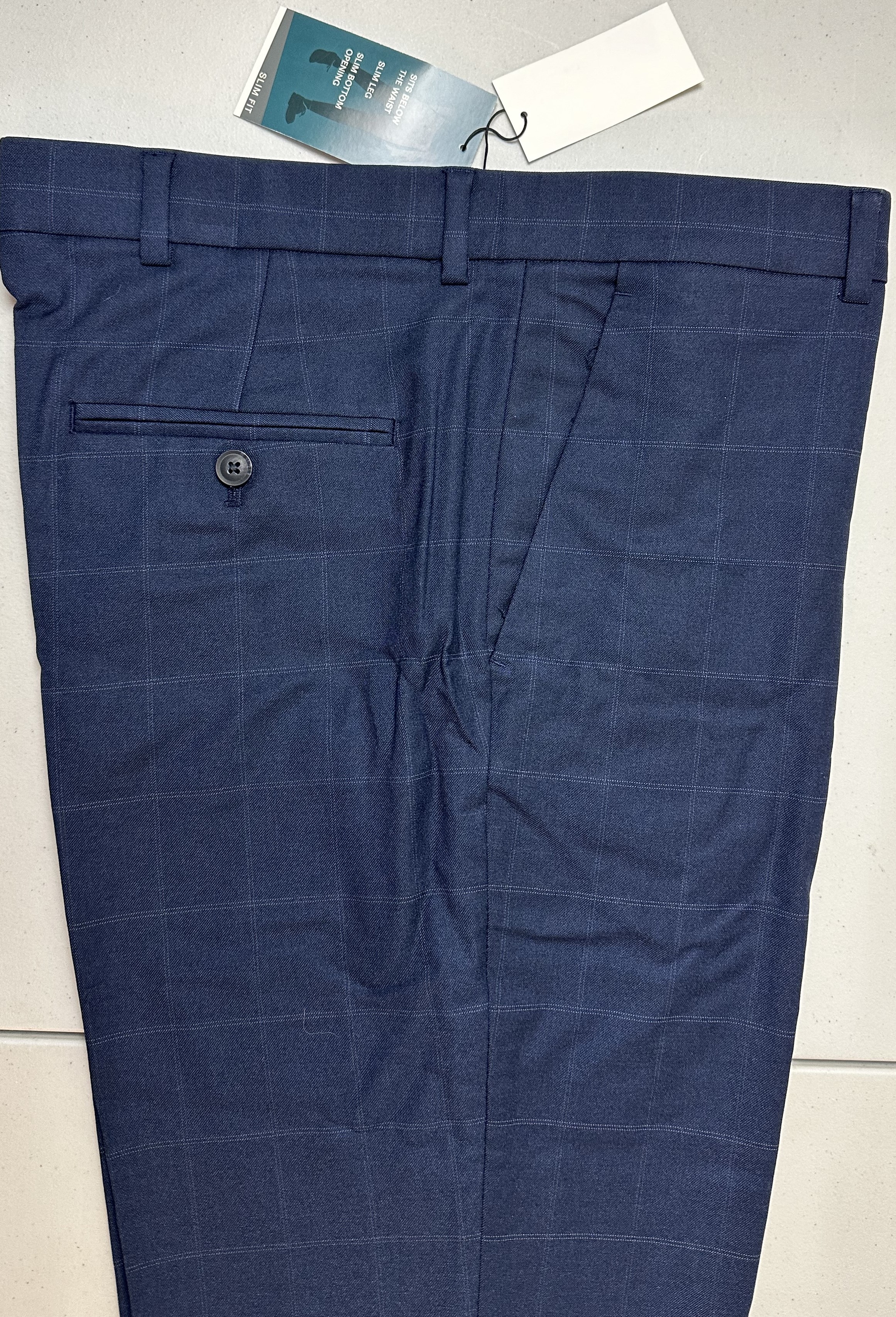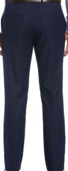 Side pockets Stretch fabric Welt pockets at back Zip fly with button closure Flat front Belt loops Imported Finished hem Size & Fit Slim fit Materials & Care Polyester, viscose, elastane Dry clean