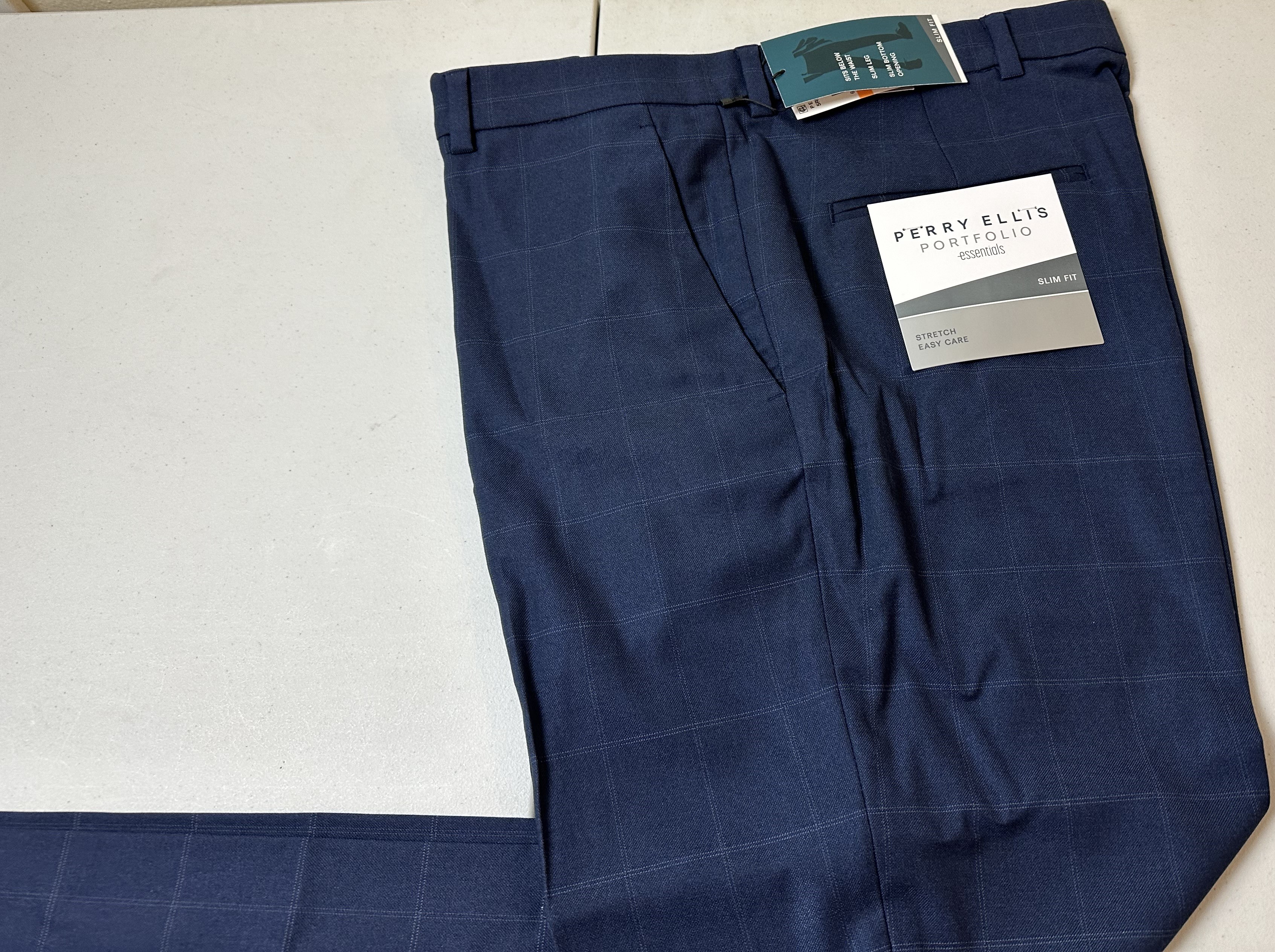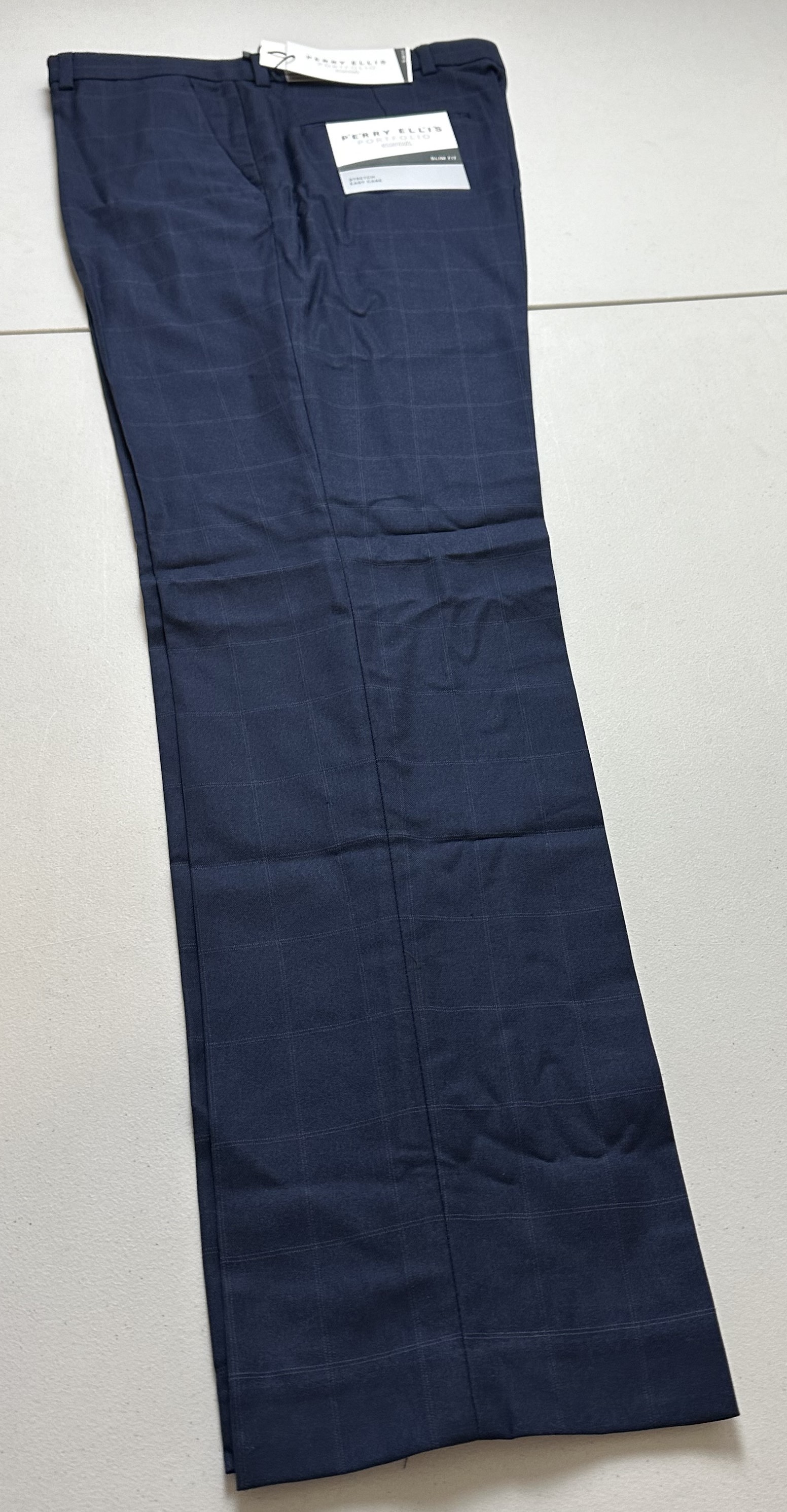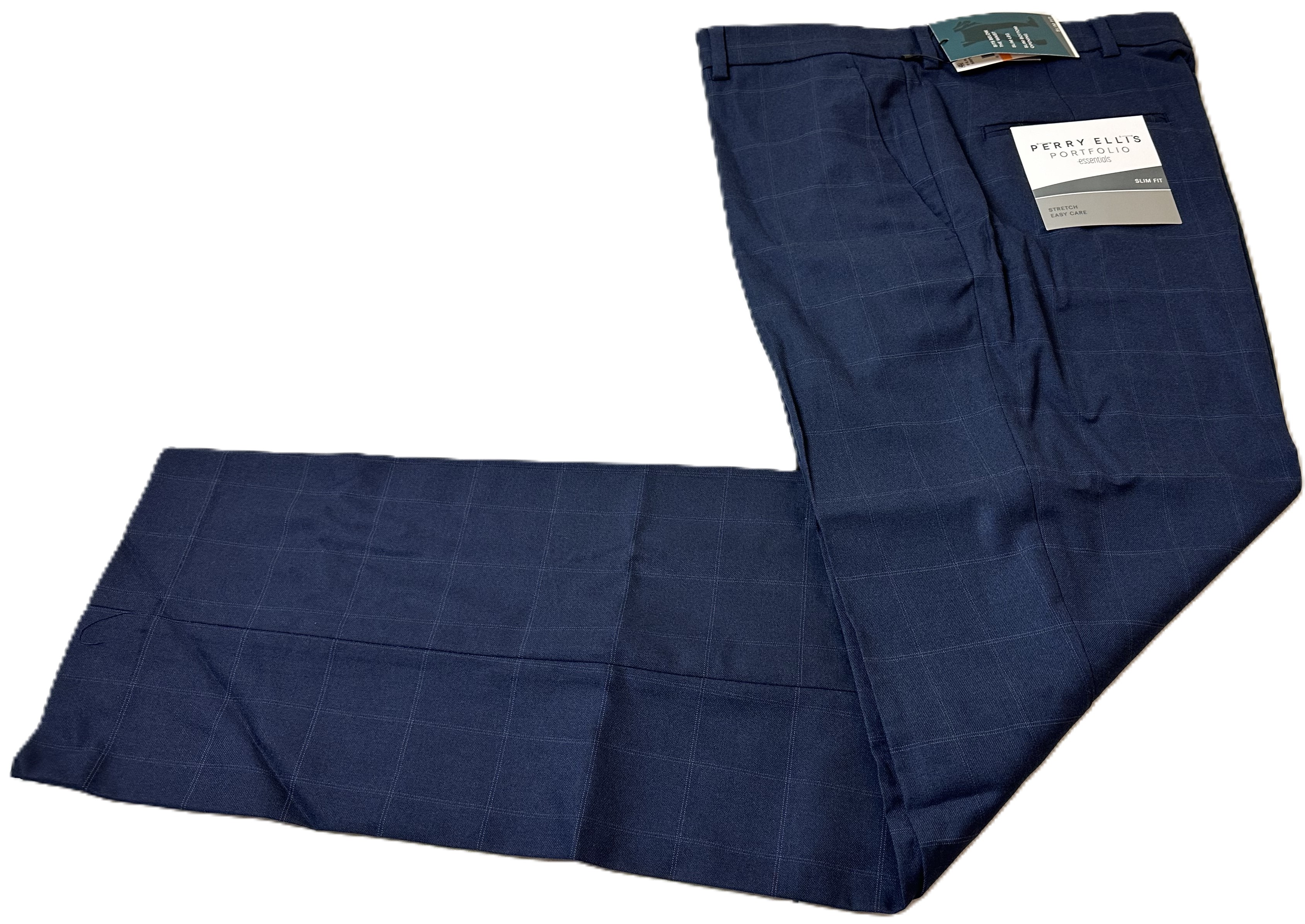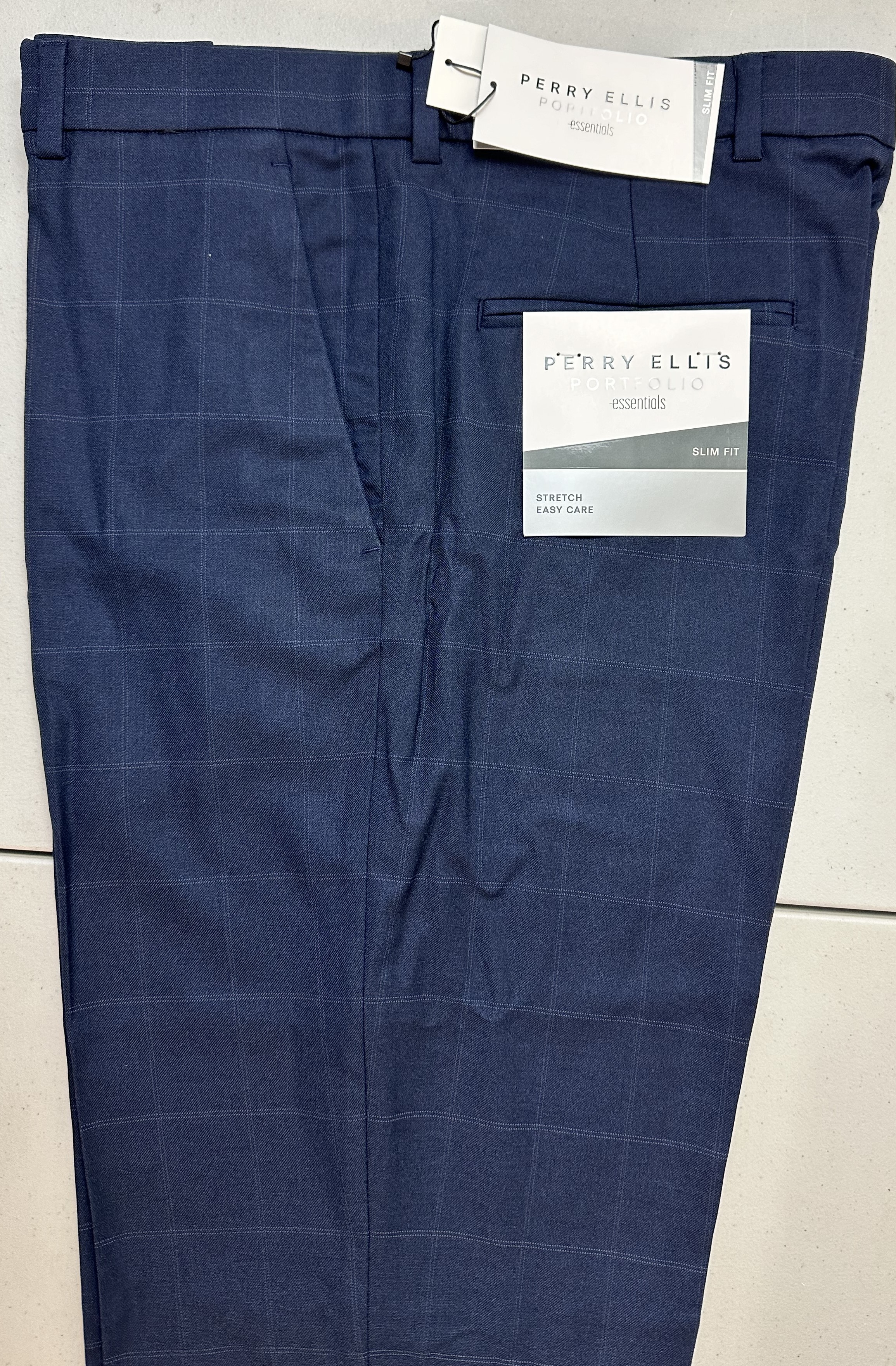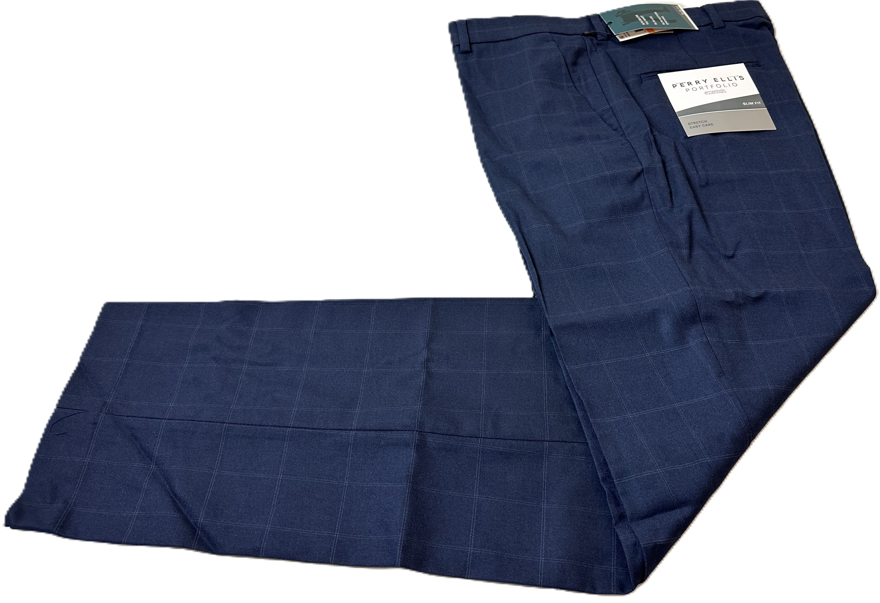Perry Ellis Men's Slim-Fit Flat Front Dress Pants in Navy-33x32